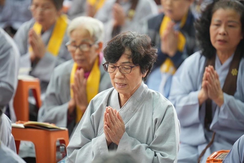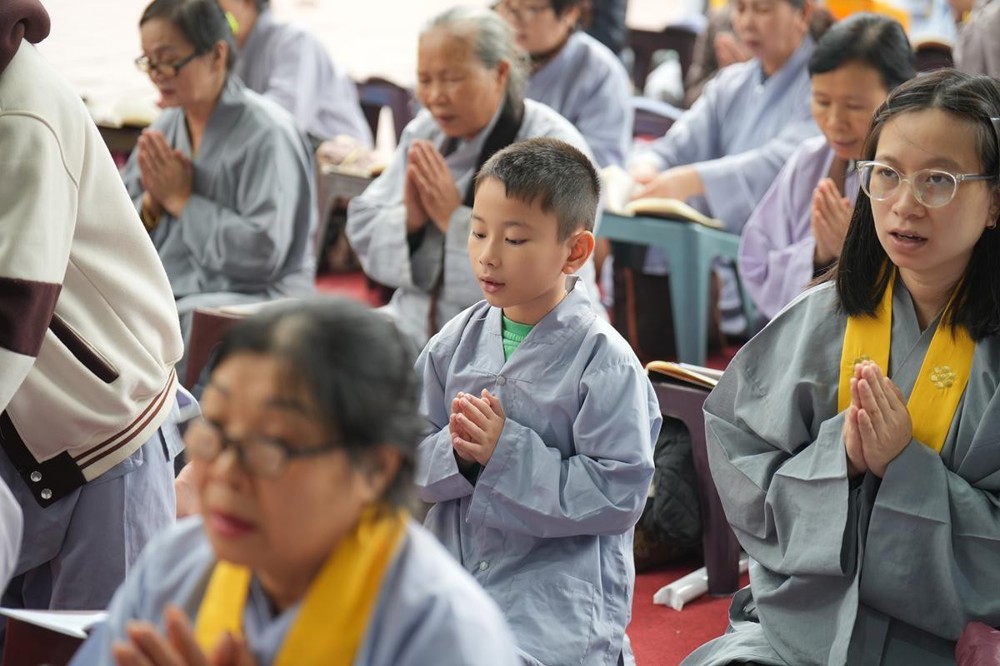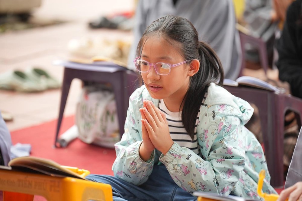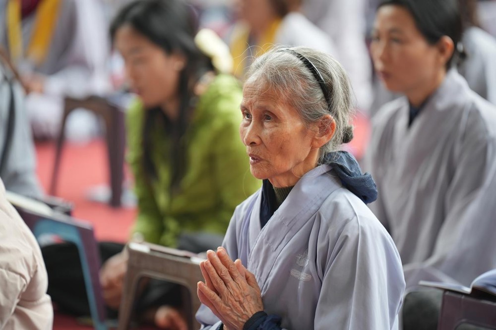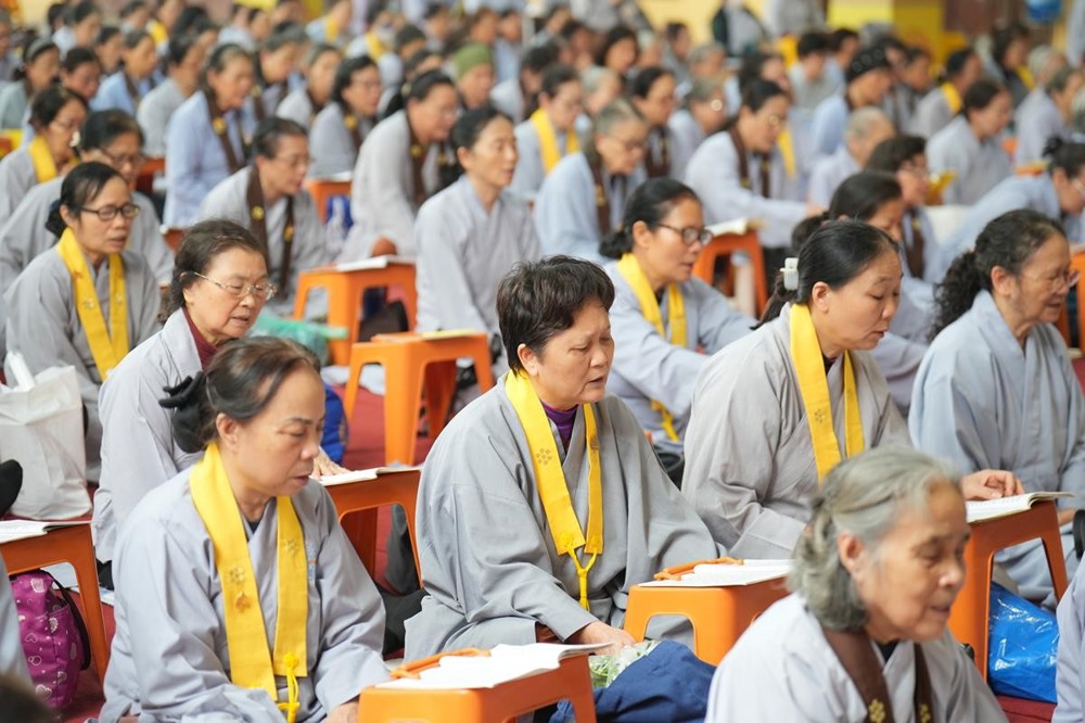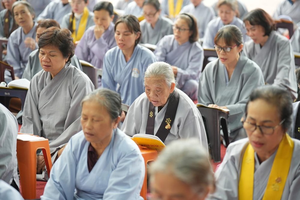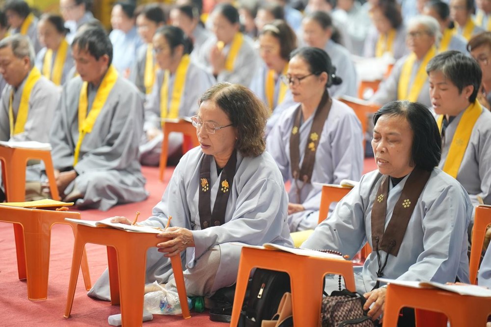 Sau thời pháp thoại ý nghĩa mà Hòa thượng truyền trao, đại chúng tiếp tục thành kính hướng về tôn tượng Đức Bản Sư, trì tụng Bổn Môn Pháp Hoa Kinh cầu nguyện Quốc thái dân an, Phật pháp hưng long.