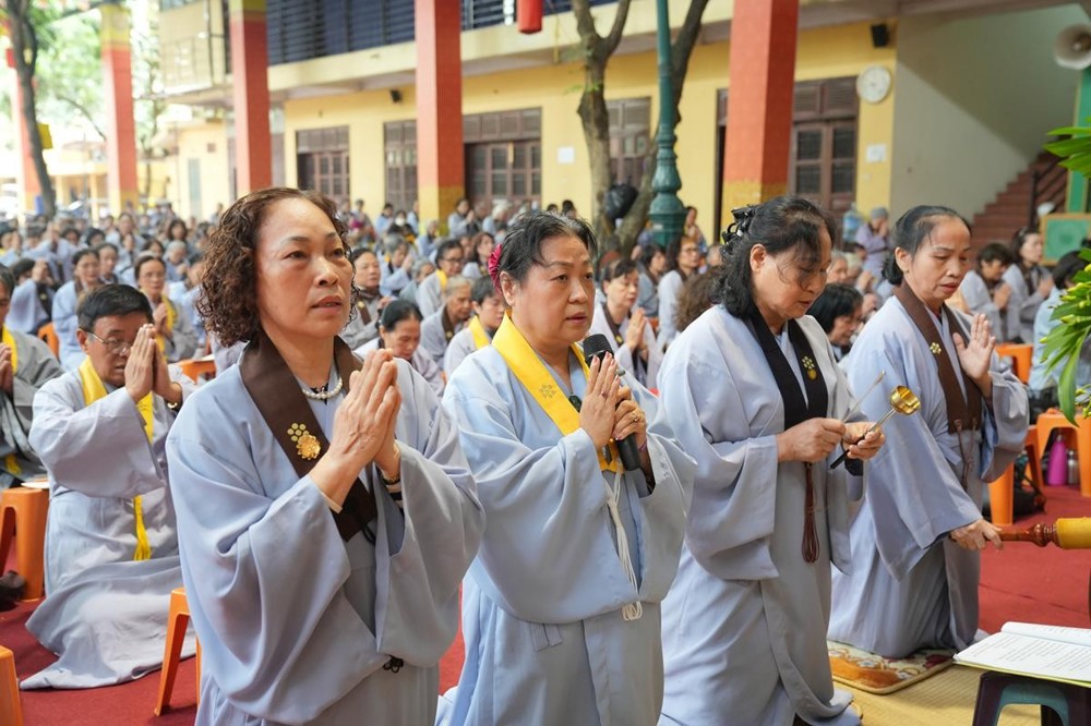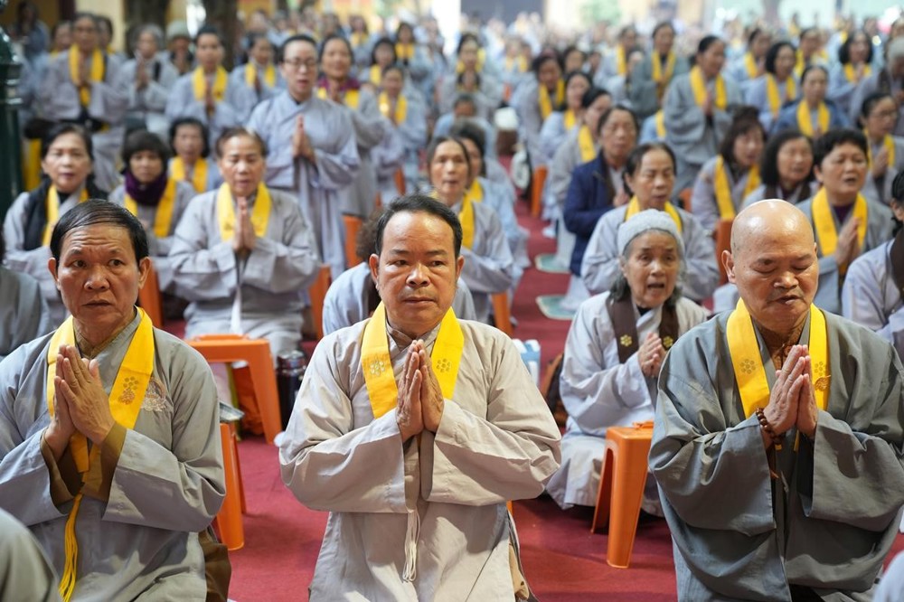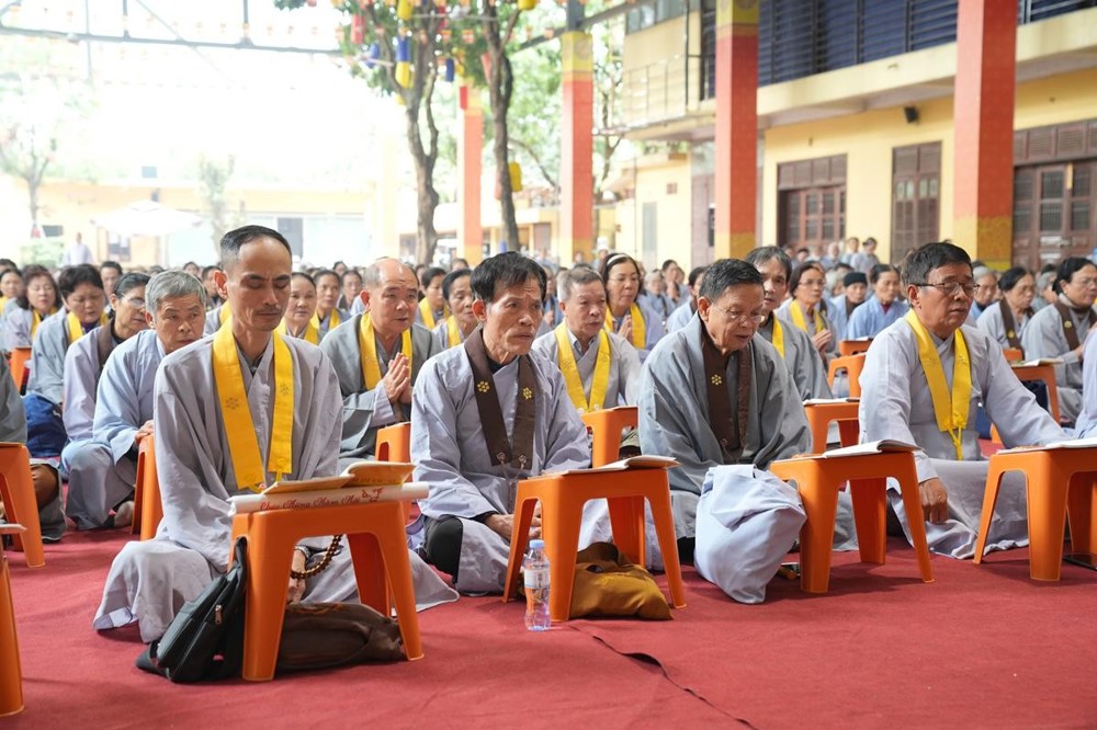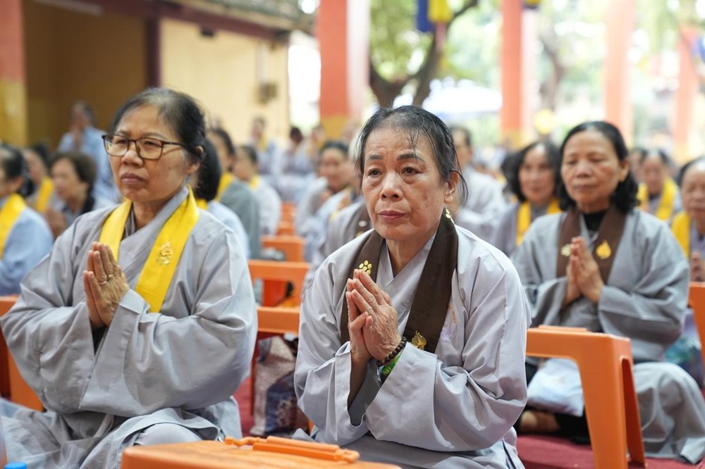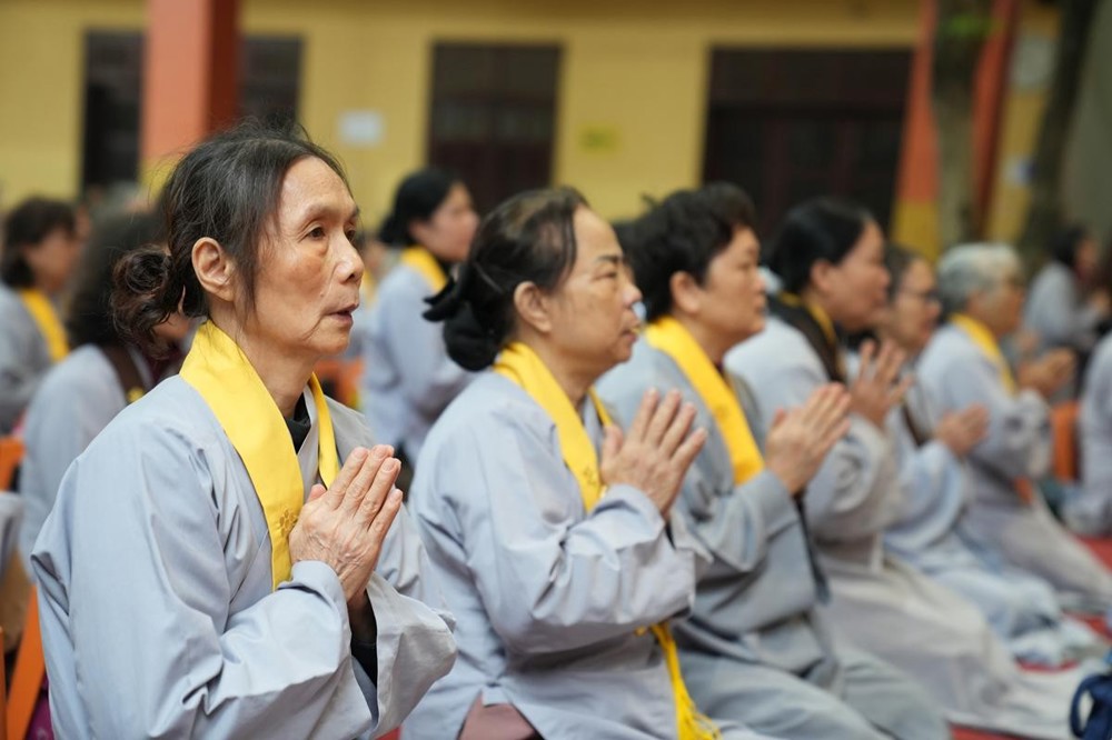 Đúng 7h30, Hòa thượng Thích Bảo Nghiêm – Phó Chủ tịch HĐTS, Trưởng Ban Hoằng pháp TƯ GHPGVN, Trưởng BTS GHPGVN thành phố Hà Nội, trụ trì chùa Bằng đã làm lễ niêm hương bạch Phật, yết Tổ và đăng đàn truyền giới cho các hành giả tu tập Bát Quan Trai giới trong ngày tu này.