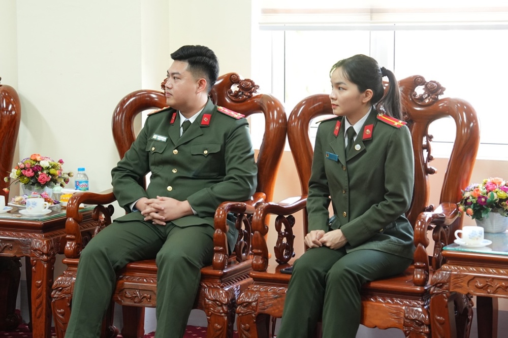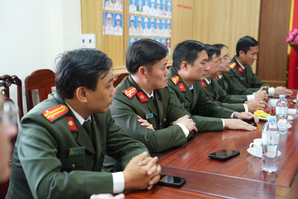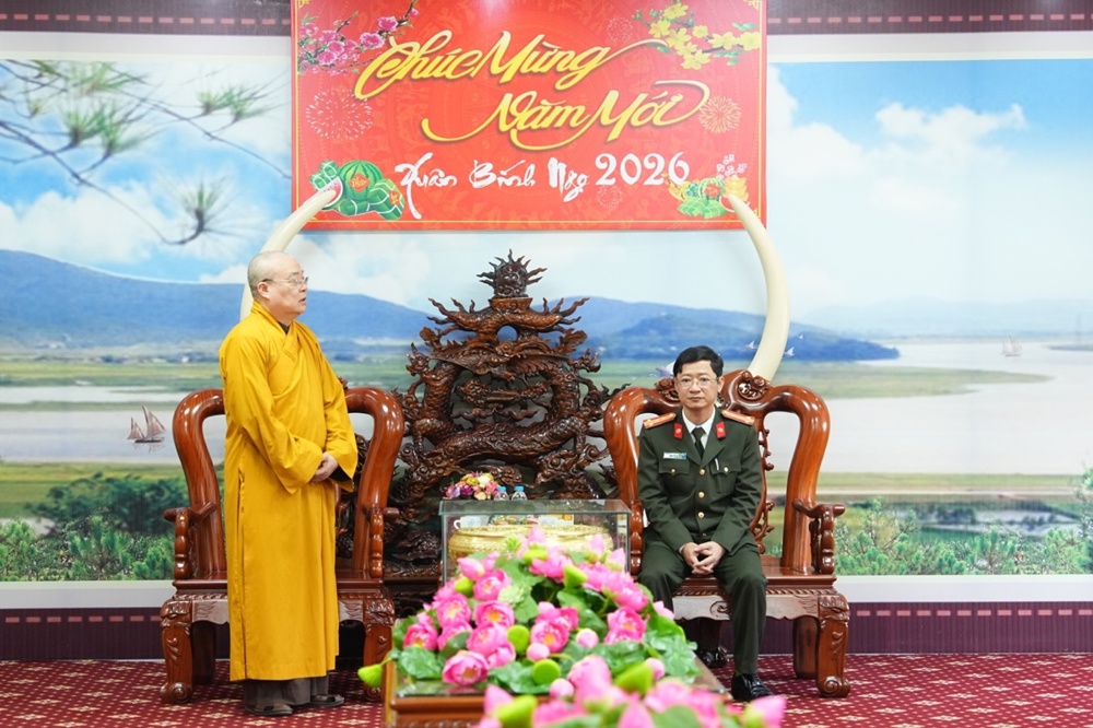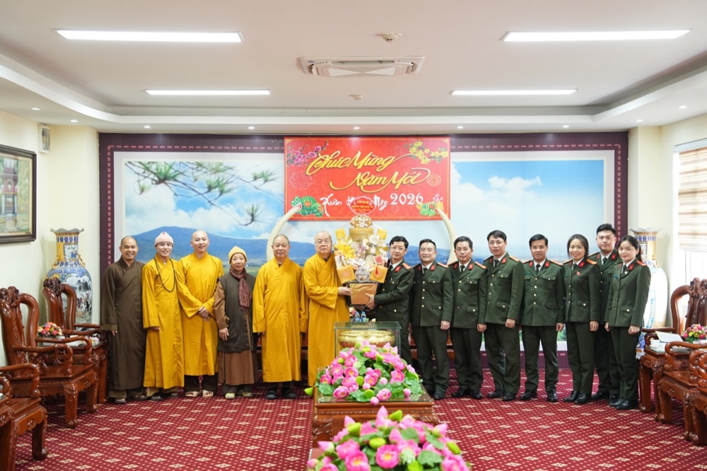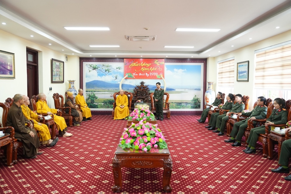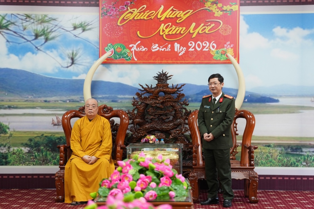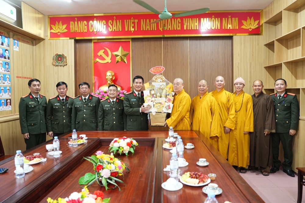 Trong không khí thân mật, Thượng tá Lê Đức Dũng - Trưởng Phòng An ninh nội địa, Công an tỉnh Nghệ An gửi lời chúc Xuân an lạc đến phái đoàn. Sự quan tâm của Phật giáo là nguồn động viên lớn với các cán bộ chiến sĩ công an để tiếp tục cống hiến vì sự nghiệp an ninh Tổ quốc. Trong nhiều năm qua, hai bên đã phối hợp chặt chẽ để xây dựng, phát triển GHPGVN tỉnh; và chư Tăng Ni, Phật tử trên địa bàn tỉnh đã đóng góp không nhỏ giữ gìn sự yên bình của địa phương. Thượng tá mong muốn Phòng An ninh nội địa và GHPGVN tỉnh tiếp tục phối hợp, chăm lo an sinh xã hội, an ninh trật tự cho nhân dân xứ Nghệ.