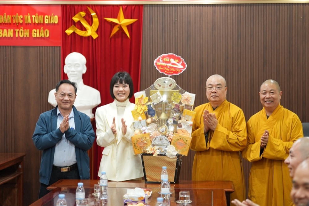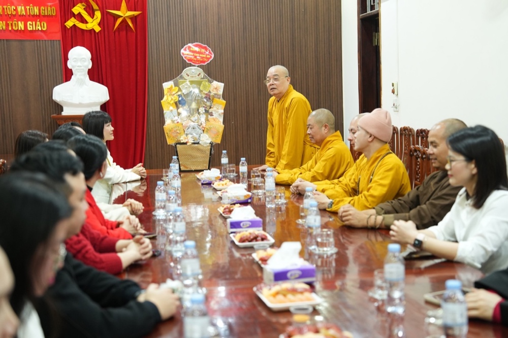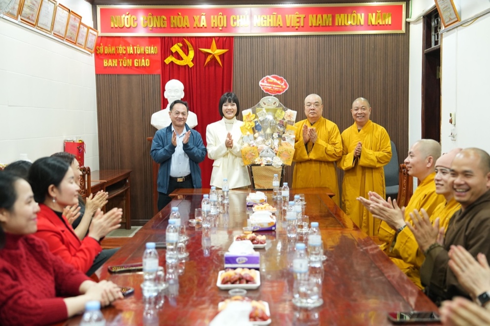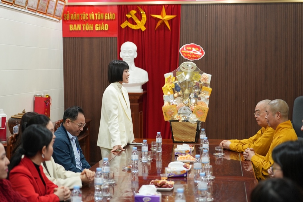 Tại trụ sở Ban Tôn giáo - Sở Dân tộc và Tôn giáo tỉnh Nghệ An, Bà Trần Thị Thanh Huyền – Trưởng Ban Tôn giáo tỉnh trân trọng cảm ơn tình cảm của phái đoàn. Bà cam kết Ban Tôn giáo luôn đồng hành cùng GHPGVN tỉnh, thực hiện các nhu cầu chính đáng của Phật giáo. Ban Tôn giáo sẽ là cầu nối giữa GHPGVN với các cấp chính quyền tỉnh để giải quyết các vấn đề tôn giáo, cũng như phối hợp hoạt động để các Phật sự trong thời gian tới được thành tựu.