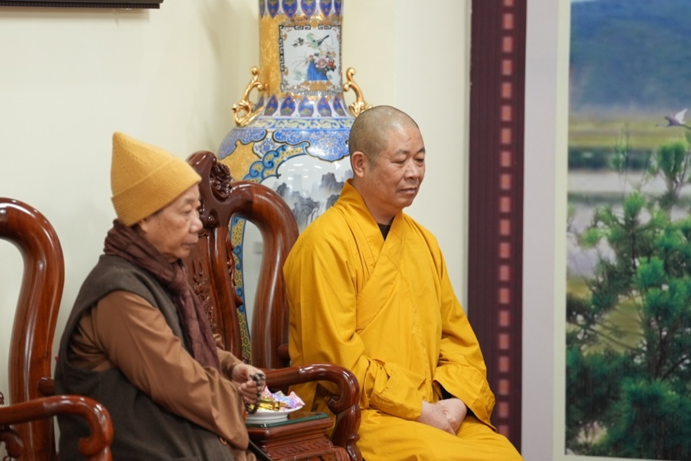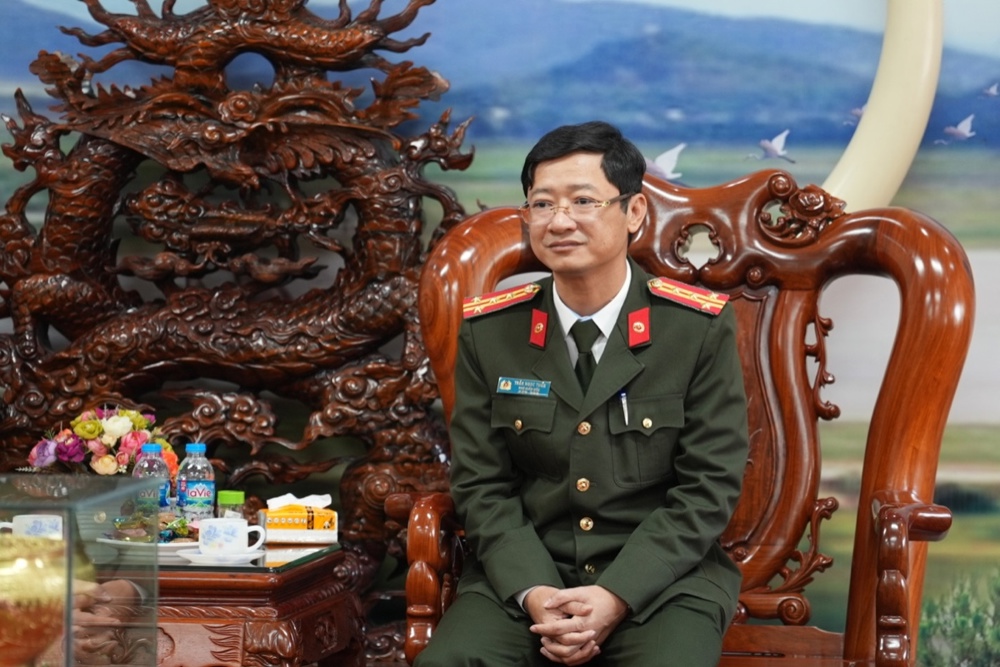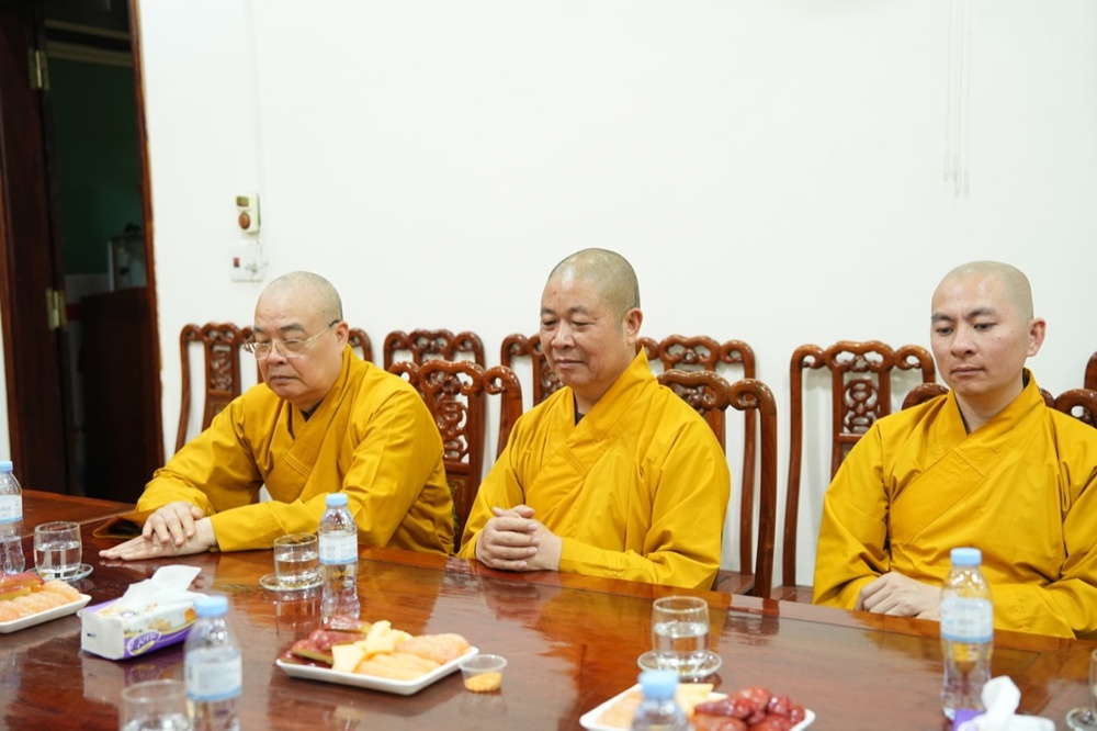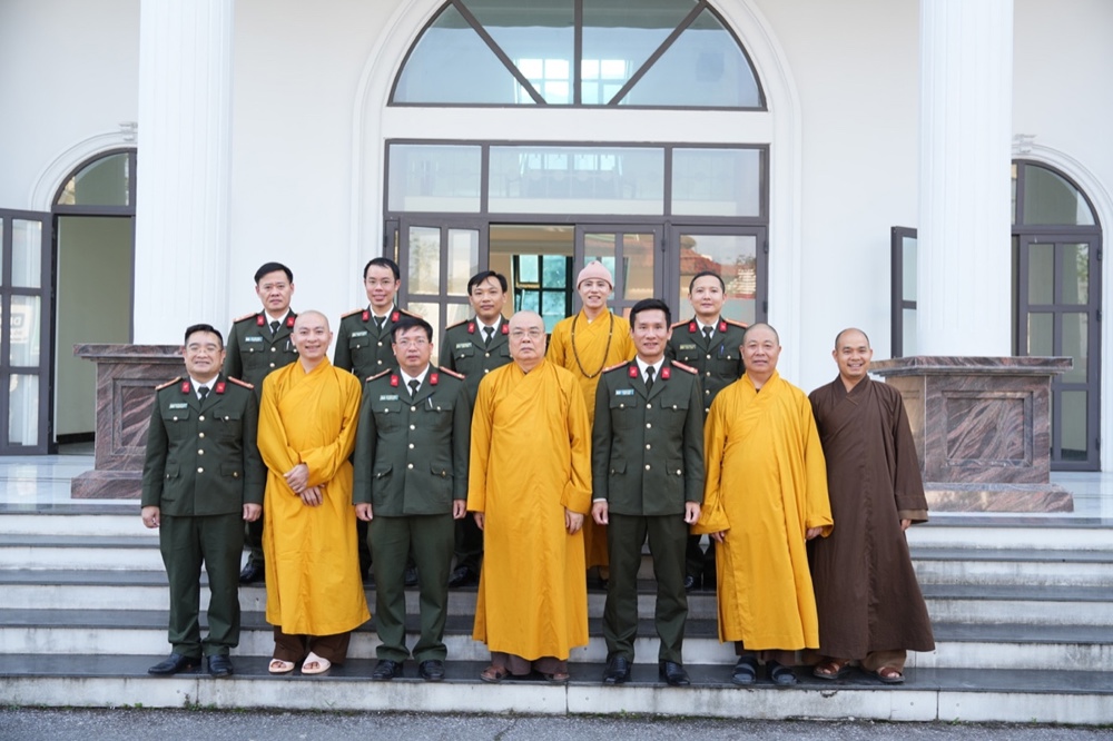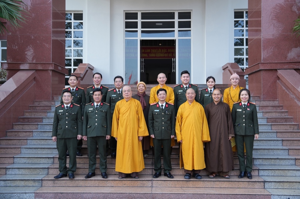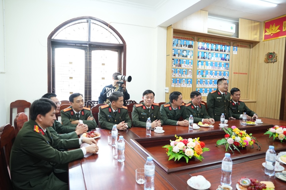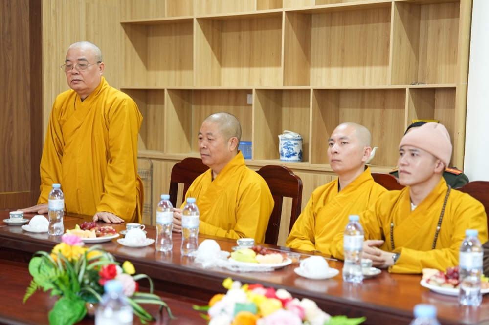 Tiếp đoàn, Đại tá Trần Ngọc Tuấn – Phó Giám đốc Công an tỉnh Nghệ An bày tỏ niềm vui mừng được đón nhận tình cảm của phái đoàn GHPGVN tỉnh. Đại tá gửi lời cảm ơn, lời chúc năm mới tốt đẹp nhất đến Trưởng lão Hòa thượng Thích Thanh Nhiễu cùng Tăng Ni, Phật tử Nghệ An. Năm 2025 có nhiều sự kiện lớn của đất nước như Lễ kỷ niệm 80 năm Cách mạng tháng Tám thành công và Quốc khánh nước Cộng hòa xã hội chủ nghĩa Việt Nam; Lễ kỷ niệm 50 năm Ngày Giải phóng miền Nam, thống nhất đất nước; sáp nhập các đơn vị hành chính địa phương;… Để đạt được thành tựu như ngày hôm nay là nhờ có sự nỗ lực của các cấp các ngành, trong đó có chư Tăng Ni, Phật tử. Đại tá đánh giá cao sự phối hợp, chung tay của GHPGVN tỉnh cũng như sự quan tâm của chư tôn đức lãnh đạo BTS tỉnh để hoàn thành mọi nhiệm vụ đề ra.