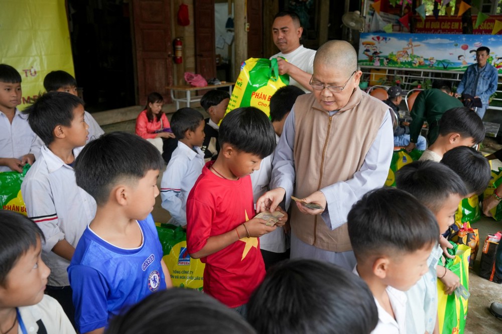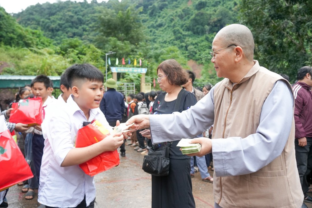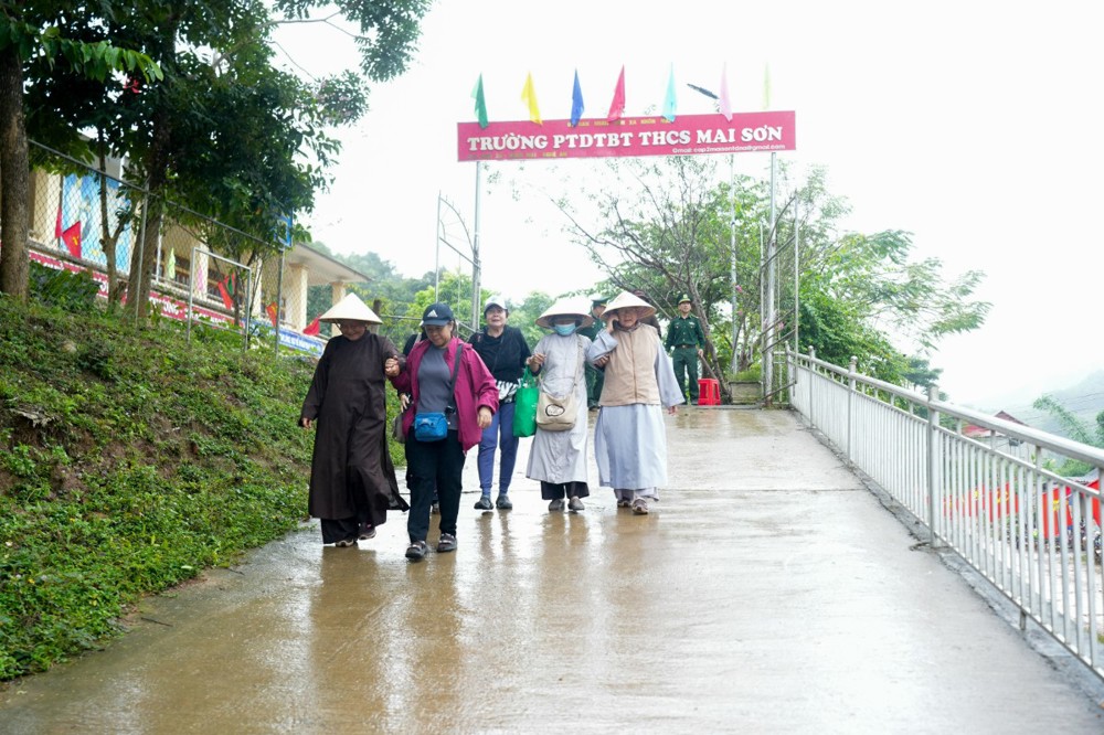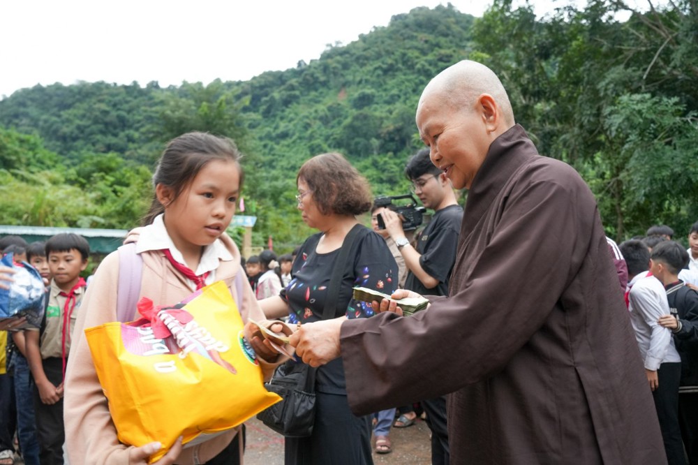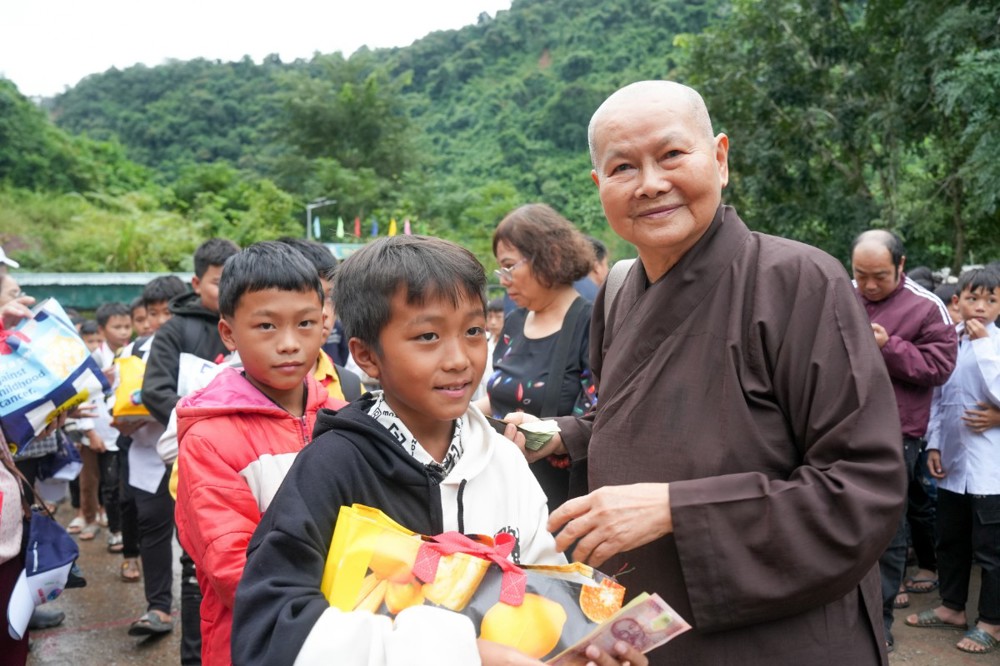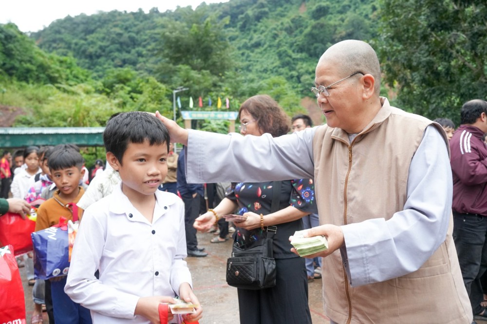 Trong niềm xúc động của bà con vùng cao, những món quà nghĩa tình không chỉ mang đến sự sẻ chia vật chất mà còn thắp lên niềm tin và hơi ấm yêu thương giữa mùa bão lũ. Tại các điểm trao quà, Ni trưởng Thích Tắc Mẫn xúc động chia sẻ: “Mỗi món quà là một hạt giống từ bi gửi đến đồng bào đang oằn mình vượt lũ, là lời nhắc nhở về tinh thần tương thân tương ái, về sức mạnh của tình người luôn tỏa sáng giữa gian khó”.