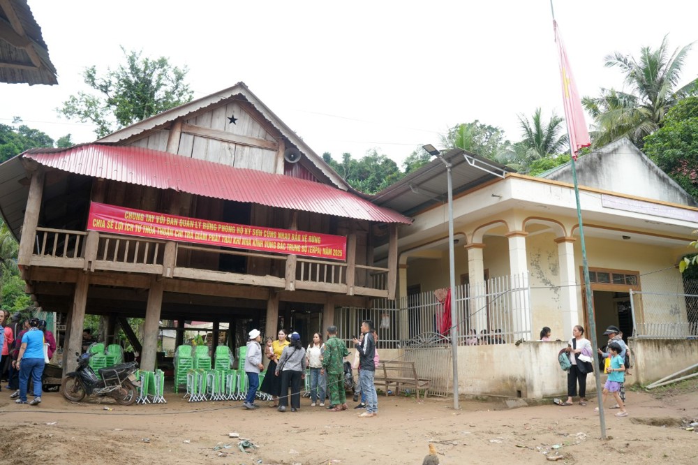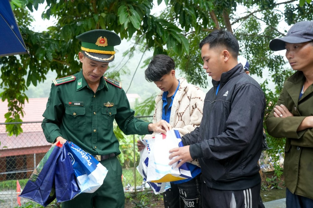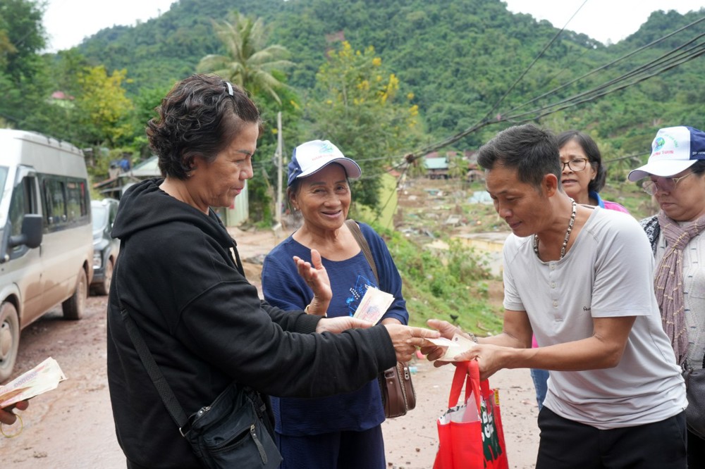 Tại bản Huồi Xá, xã Nhôn Mai, đoàn đã trao tặng 200 phần quà đến các hộ dân bị ảnh hưởng, mỗi bao gồm 700.000 đồng tiền mặt, lương khô và các nhu yếu phẩm thiết yếu. Đây là vùng cao biên giới với hơn 100 ngôi nhà bị tàn phá, cuộc sống của người dân sau lũ còn nhiều khó khăn, thiếu thốn.