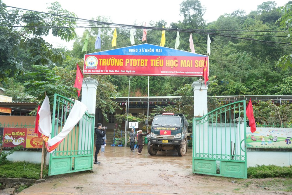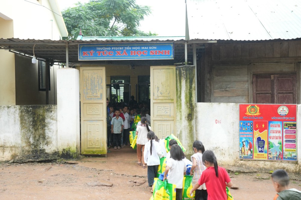 Không chỉ quan tâm đến bà con, tại xã Nhôn Mai, đoàn còn trao tặng quà cho 170 học sinh tại Trường PTDTBT THCS Mai Sơn, 150 học sinh Trường Tiểu học PTDTBT Mai Sơn và 100 học sinh Trường Mầm non Mai Sơn, những phần quà gồm tiền mặt, áo ấm, chăn, bánh kẹo, kem đánh răng, tủ nấu cơm góp phần giúp các em vượt qua mùa đông đang đến gần.