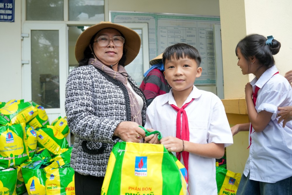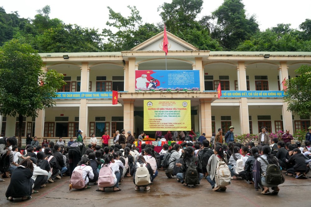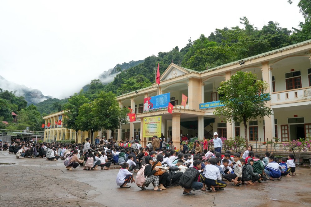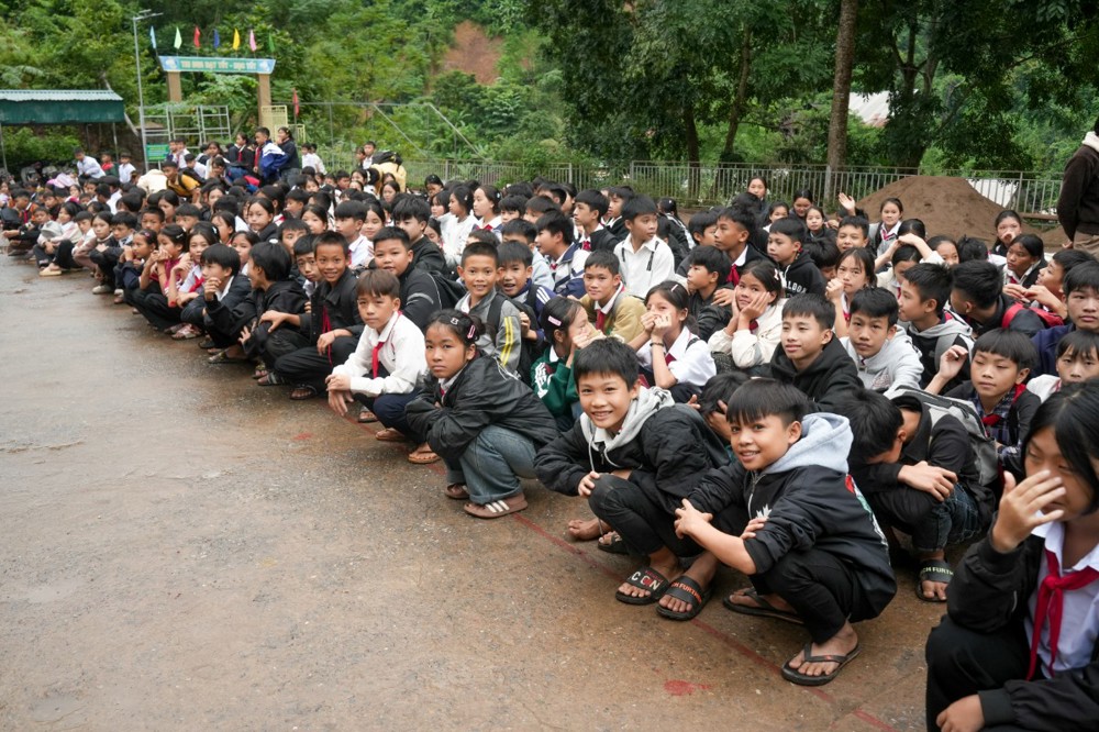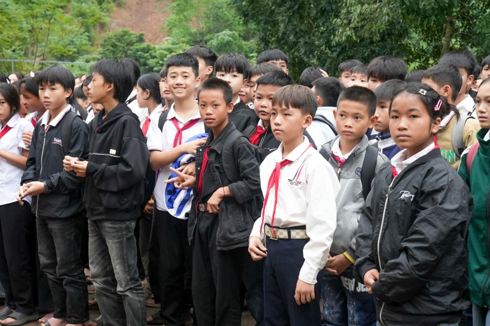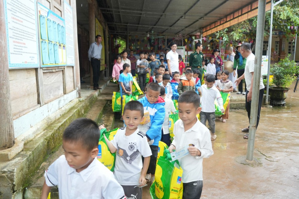 Bên cạnh đó, đoàn còn gửi tặng Trường PTDTBT THCS Mỹ Lý – nơi có 401 học sinh đang theo học, trong đó 90% là con em hộ nghèo người dân tộc thiểu số – những phần quà gồm tiền mặt, áo ấm và các nhu yếu phẩm, giúp các em thêm ấm áp, vững bước đến trường trong mùa lạnh giá sắp đến.