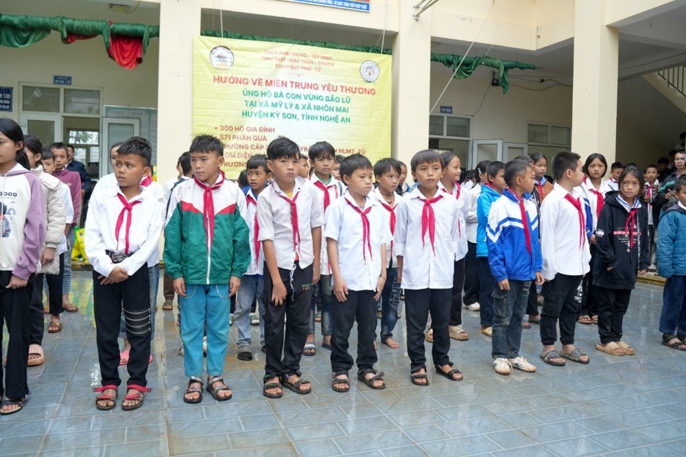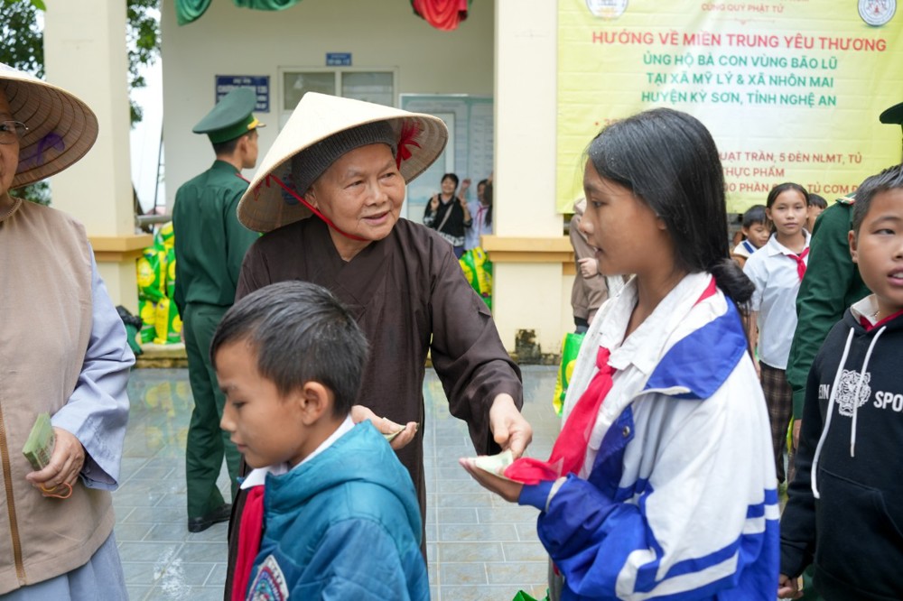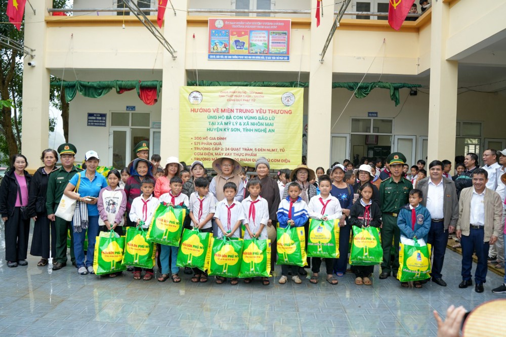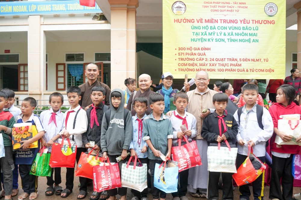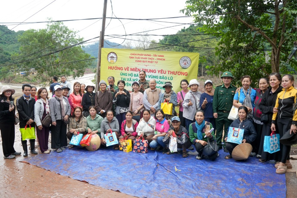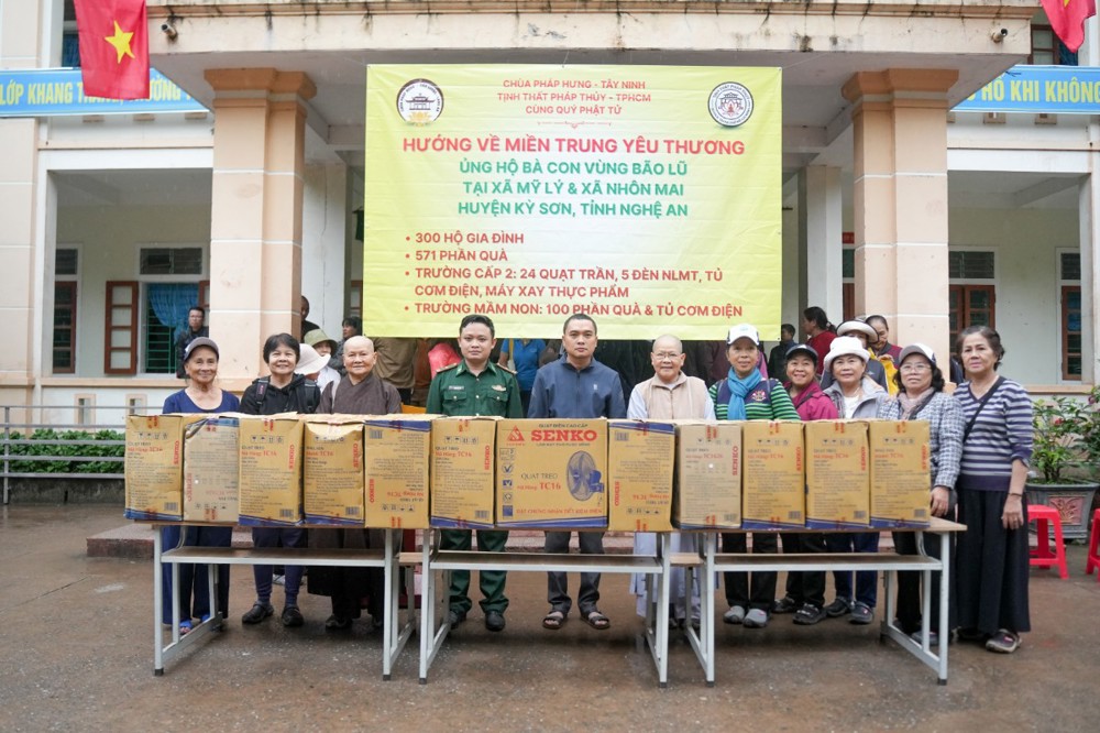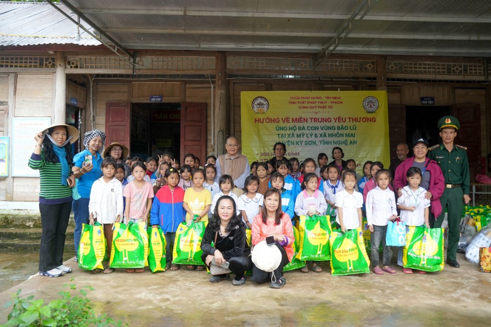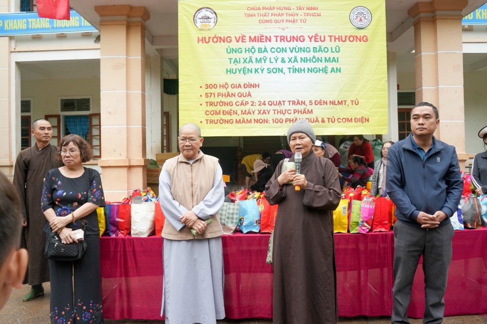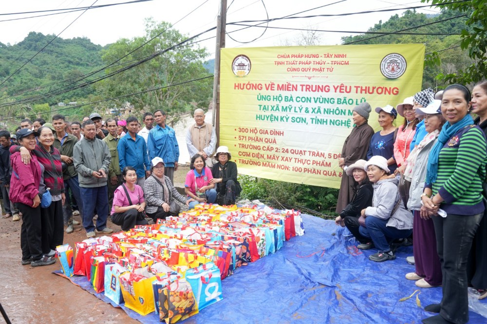 Ngày 3/11/2025, đoàn cứu trợ do Ni trưởng Thích Tắc Mẫn – Trụ trì chùa Pháp Hưng (tỉnh Tây Ninh) làm Trưởng đoàn, cùng Ni sư Thích An Hiếu – Tịnh thất Pháp Thủy (TP.HCM) cùng các Phật tử mạnh thường quân đã vượt hơn 1000km từ miền Nam đến hai xã Nhôn Mai và Mỹ Lý (tỉnh Nghệ An) – những địa phương chịu thiệt hại nặng nề sau trận lũ lịch sử cuối tháng 7 vừa qua.