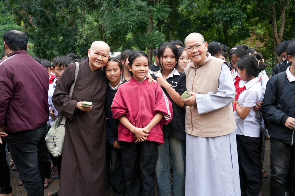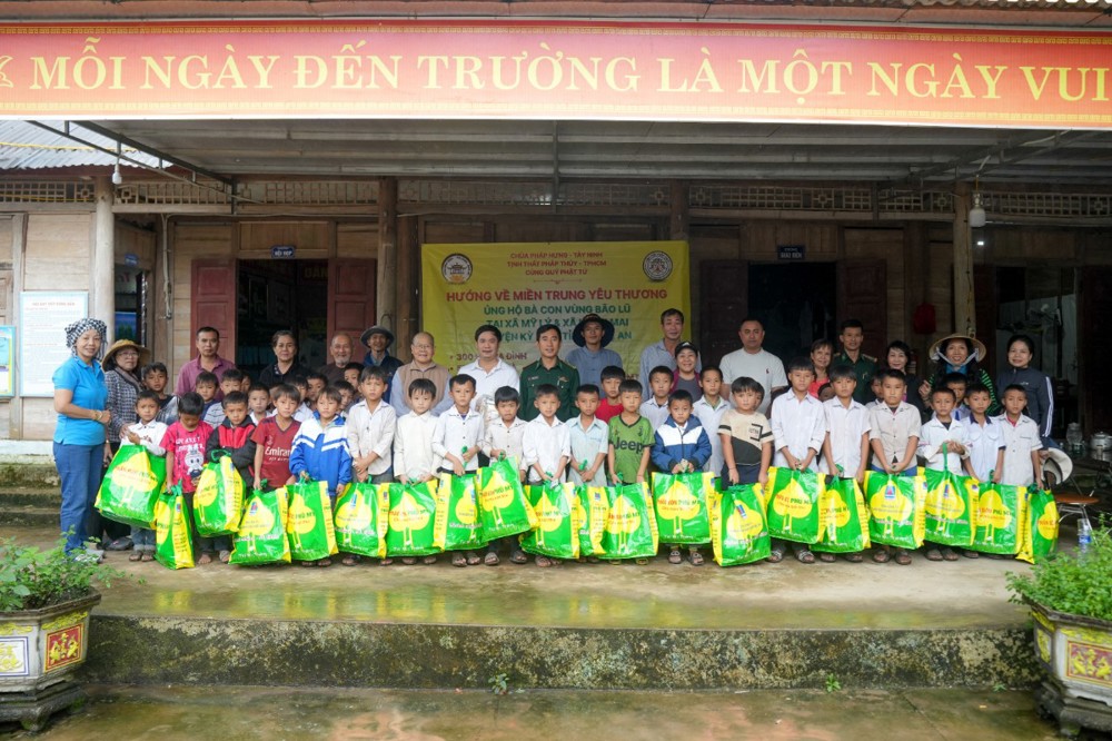 Chuyến đi không chỉ mang theo những phần quà vật chất, mà còn là nhịp cầu nối yêu thương từ miền Nam đến miền Trung, nơi con người vẫn đang chắt chiu từng ngày sau thiên tai. Những ngôi trường vùng cao, những đứa trẻ trong chiếc áo ấm mới, ánh đèn sáng lên ở đồn biên phòng… tất cả như minh chứng cho sức sống bền bỉ và tấm lòng sẻ chia của những người con Phật.