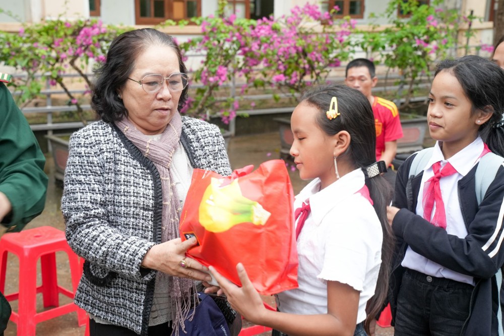 Ngoài ra, đoàn cũng trao tặng 20 bộ bàn ghế ăn, 24 quạt treo tường và 5 đèn năng lượng mặt trời dành cho nhà trường và Đồn Biên phòng Mỹ Lý, góp phần cải thiện điều kiện học tập và sinh hoạt nơi vùng biên giới xa xôi.