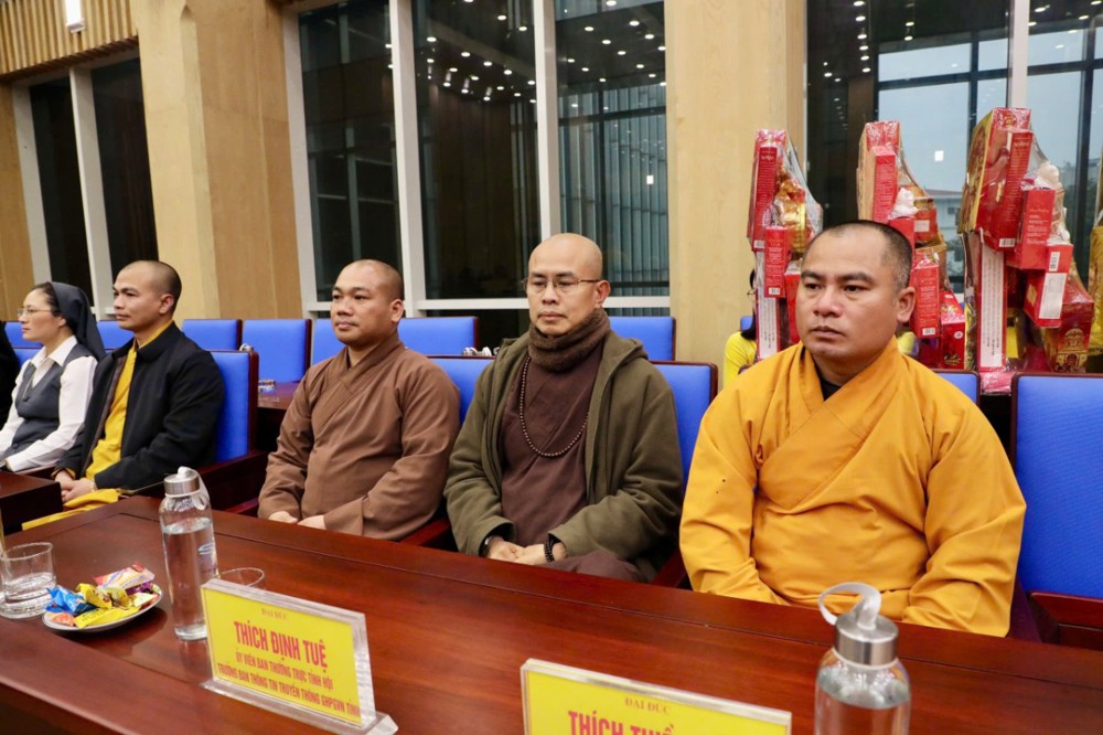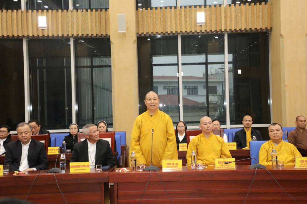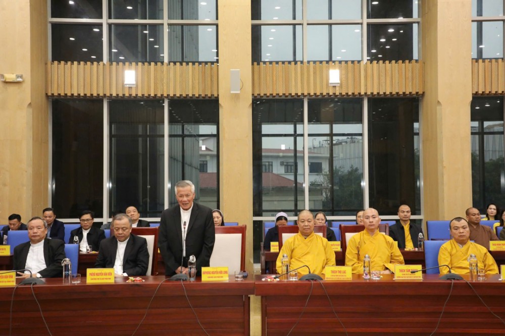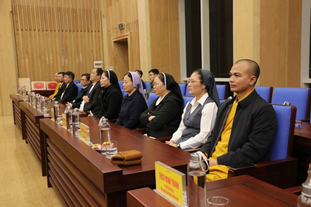 Đoàn Phật giáo do Hòa thượng Thích Thọ Lạc – Ủy viên Thường trực Hội đồng Trị sự, Trưởng ban Văn hóa Trung ương, Phó Trưởng ban Thường trực Ban Trị sự GHPGVN tỉnh – làm Trưởng đoàn; tháp tùng có chư Tôn đức Thường trực Ban Trị sự GHPGVN tỉnh. Đoàn Công giáo do Giám mục Anphong Nguyễn Hữu Long – Giám mục Chính tòa Giáo phận Vinh – làm Trưởng đoàn, cùng quý linh mục, tu sĩ và nữ tu đại diện Giáo phận Vinh.