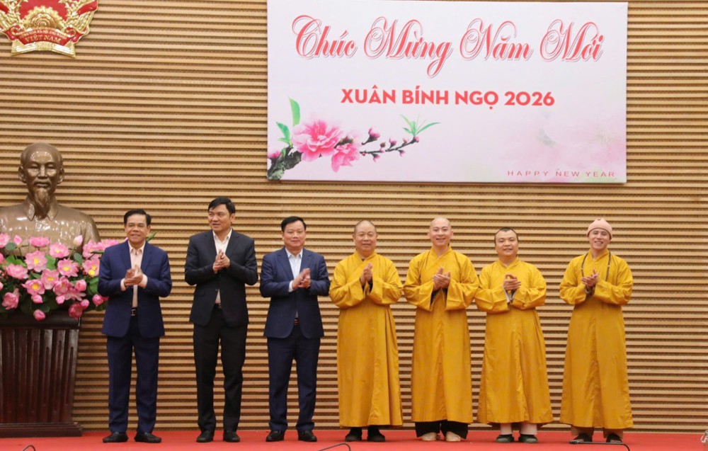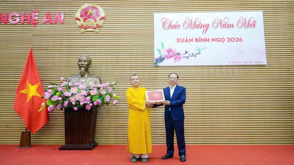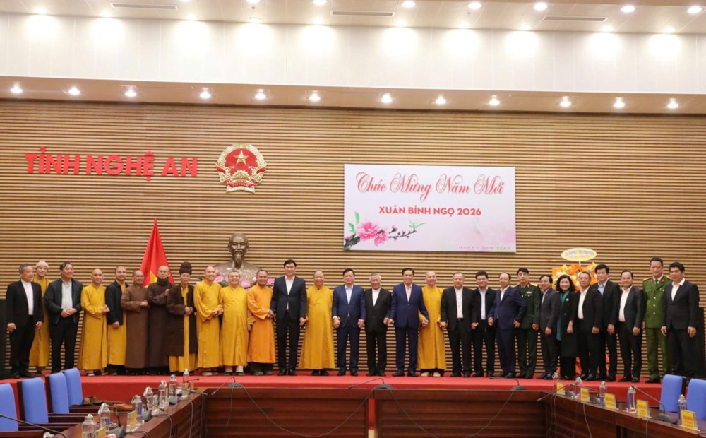 PSO - Chiều ngày 09/02/2026, nhân dịp năm mới 2026 và chuẩn bị đón Tết Nguyên đán Bính Ngọ, Ban Trị sự GHPGVN tỉnh Nghệ An cùng Tòa Giám mục Giáo phận Vinh đã đến thăm và chúc mừng Tỉnh ủy, HĐND, UBND, Ủy ban MTTQ Việt Nam tỉnh Nghệ An.