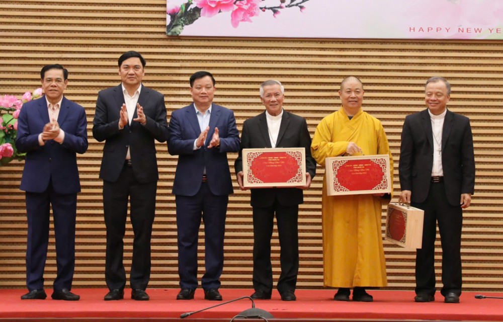 Đại diện Công giáo, Giám mục Anphong Nguyễn Hữu Long cũng bày tỏ vui mừng trước những kết quả mà tỉnh Nghệ An đạt được, đồng thời trân trọng cảm ơn sự quan tâm, tạo điều kiện của các cấp chính quyền đối với đời sống tôn giáo của đồng bào Công giáo. Giám mục khẳng định đồng bào Công giáo sẽ tiếp tục chấp hành tốt chủ trương, chính sách của Đảng và Nhà nước, góp phần xây dựng đời sống nhân dân ngày càng ấm no, hạnh phúc; đồng thời gửi lời chúc năm mới an vui, hạnh phúc đến lãnh đạo tỉnh.