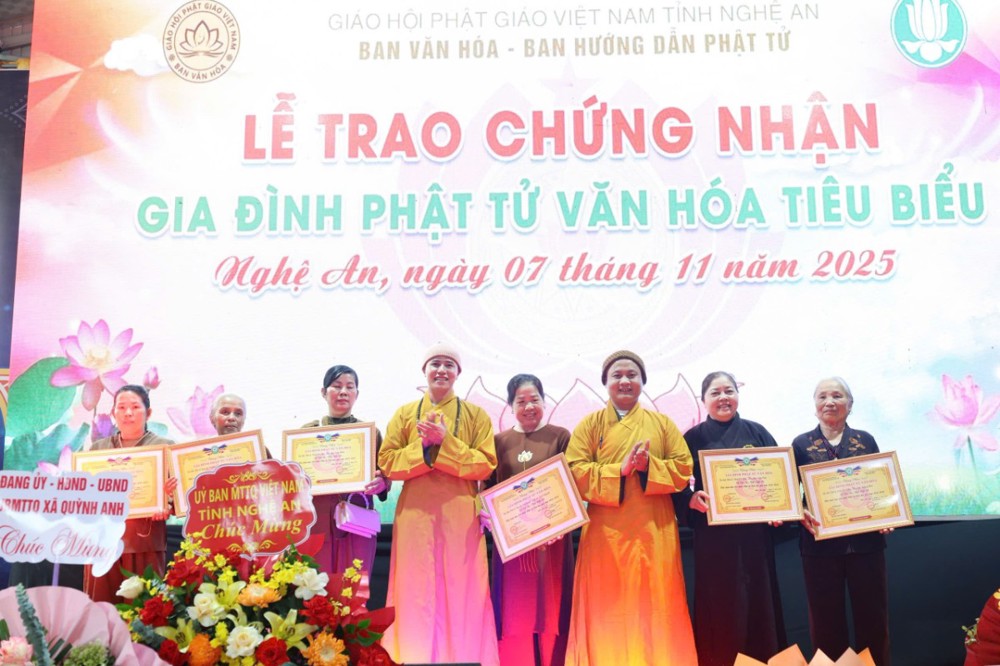 Trên cơ sở bình chọn từ các chùa, đạo tràng và bản hội, Ban Tổ chức đã xét duyệt và trao tặng 2.064 chứng nhận Gia đình Phật tử Văn hóa tiêu biểu giai đoạn 2023 – 2025.