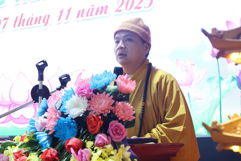 Ban đạo từ tại buổi lễ, Đại đức Thích Châu Phong – Phó Chánh Thư ký Tỉnh hội, Trưởng Ban Pháp chế GHPGVN tỉnh – nhấn mạnh ý nghĩa của việc tu học và giữ gìn giá trị đạo đức trong đời sống hiện đại: “Khi đời sống vật chất ngày càng phong phú, nhưng tâm hồn con người dễ bị cuốn vào dòng chảy lo toan và cám dỗ, thì người Phật tử càng cần giữ vững niềm tin nơi Tam Bảo, coi tu tập là nền tảng, đạo đức là kim chỉ nam, và phụng sự là hạnh nguyện. Mỗi gia đình Phật tử cần nỗ lực trở thành tế bào gương mẫu của xã hội – nơi lan tỏa năng lượng bình an và tình thương đến muôn nơi.”