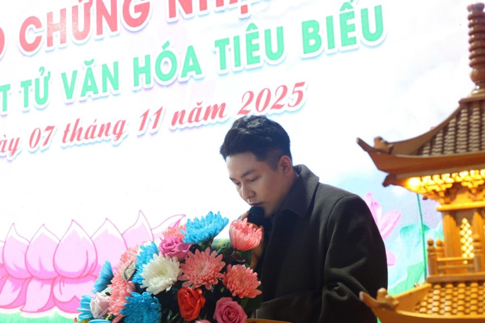 Đại diện cho các gia đình được tôn vinh, Cư sĩ Chí Minh Đạo (Cao Huy) – Trưởng Đạo tràng Thiên Linh Điện, chùa Chí Linh – bày tỏ niềm xúc động và tri ân: “Chúng con tự hào được sống trong ánh sáng từ bi, trí tuệ của Đức Phật, được chư Tôn đức Tăng Ni chỉ dạy, dìu dắt để tu học và hành đạo. Danh hiệu Gia đình Phật tử Văn hóa là niềm vinh dự lớn lao, đồng thời là trách nhiệm để mỗi người Phật tử chúng con nỗ lực hơn nữa trong việc mang tinh thần Phật pháp vào cuộc sống, góp phần xây dựng xã hội an vui, tốt đời – đẹp đạo.”