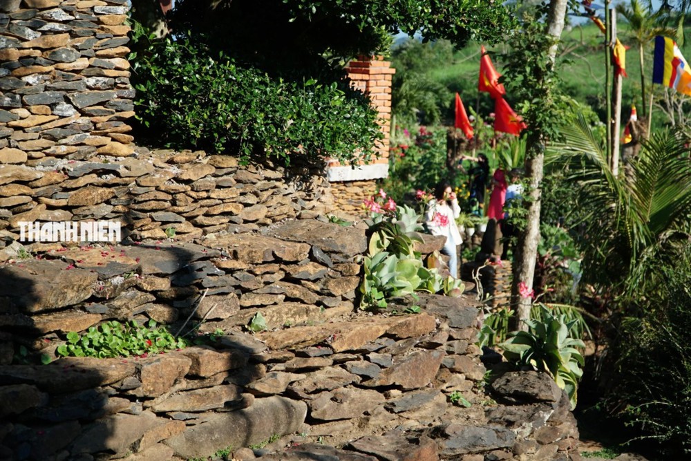 Nằm trên ngọn đồi giữa những thửa ruộng bậc thang ở Đắk Lắk, chùa Xuân Quang gần 200 năm tuổi gây ấn tượng với phần móng đá điệp xếp chồng độc đáo.