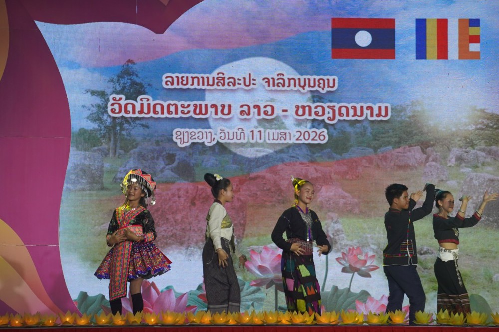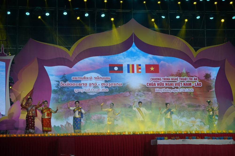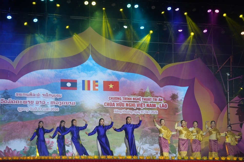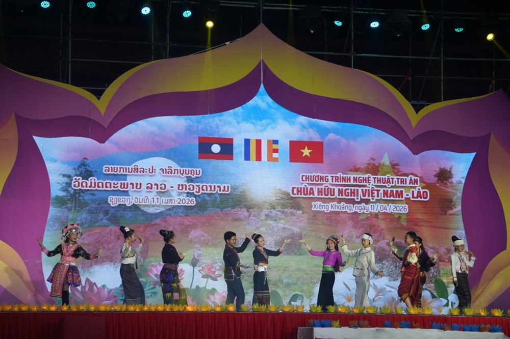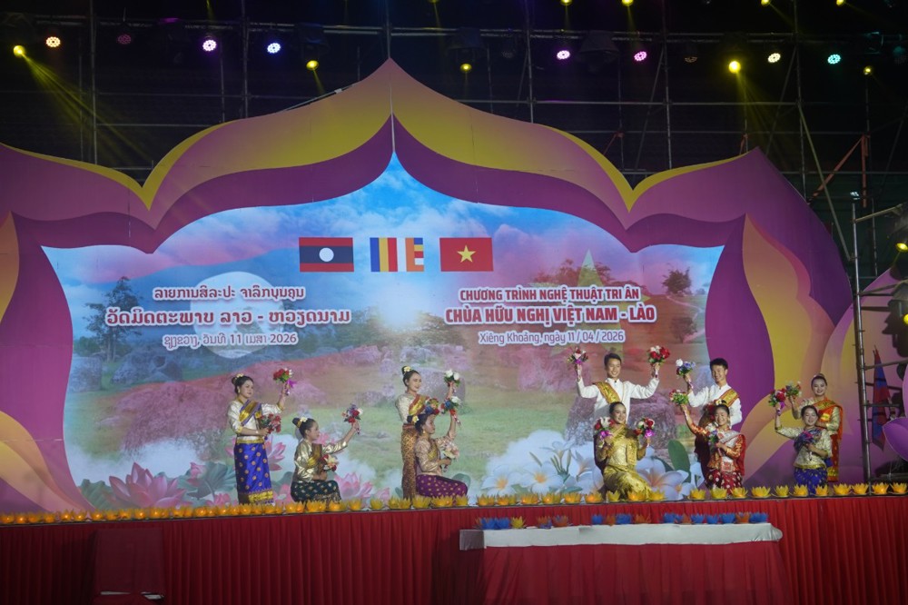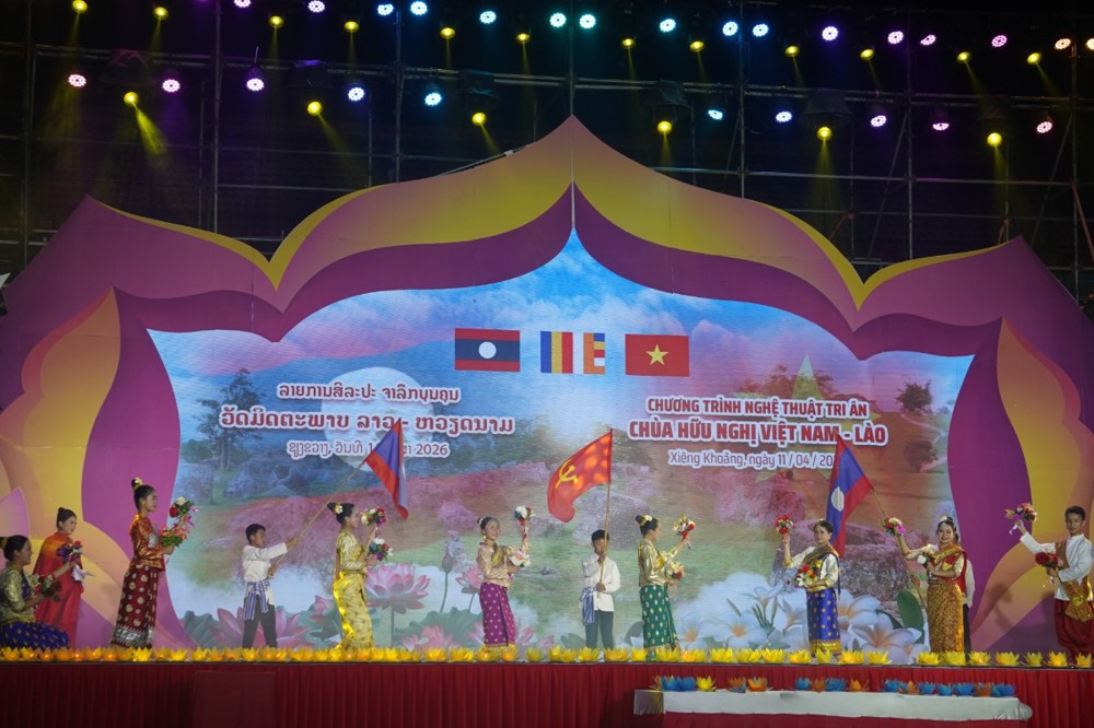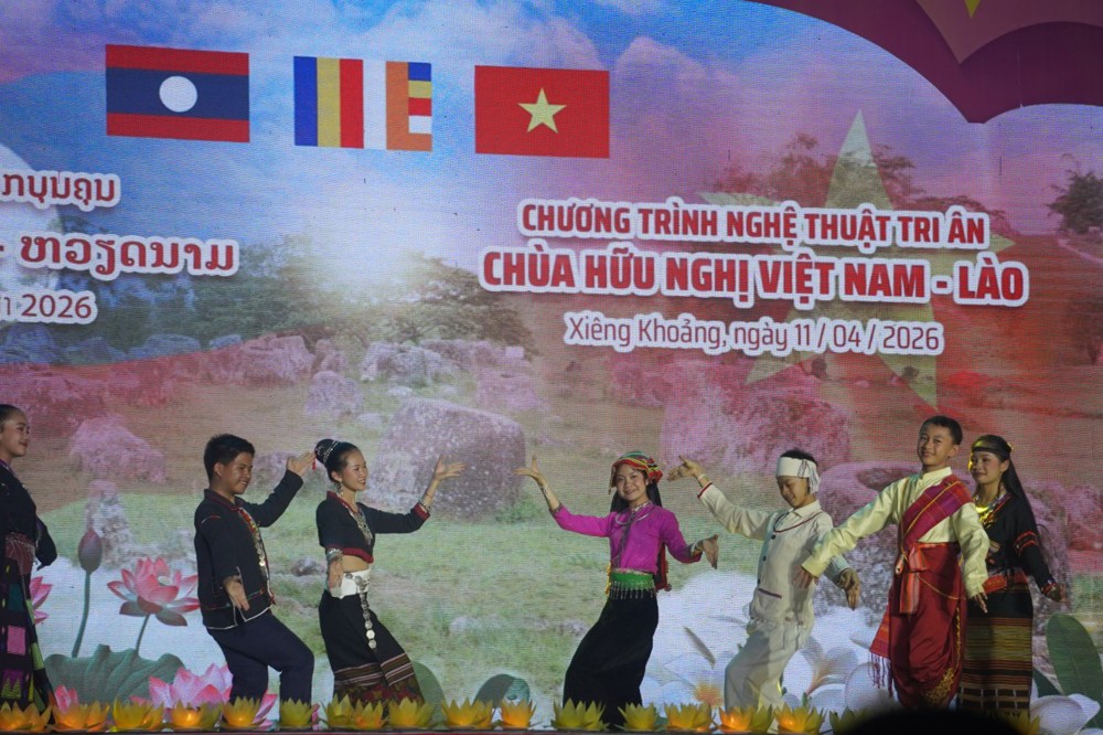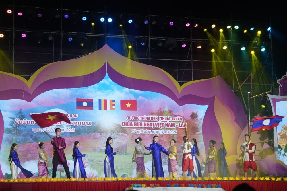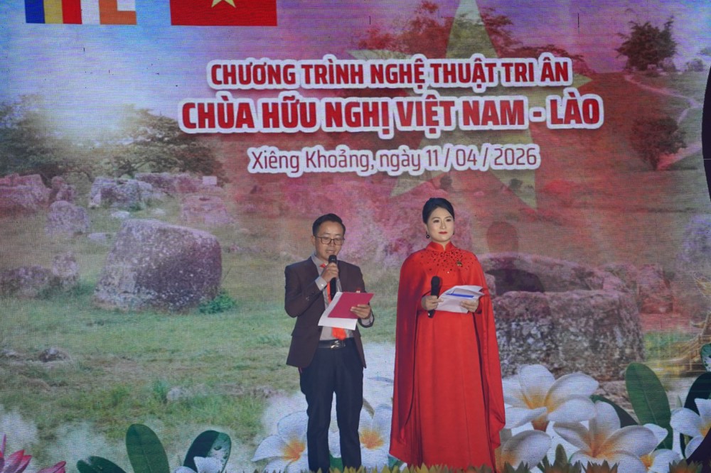 PSO: Nằm trong khuôn khổ Lễ hội Đại đoàn kết tri ân tưởng niệm các Anh hùng Liệt sĩ (AHLS) Việt Nam – Lào từ ngày 08 đến 12/04, tại chùa Hữu Nghị (Khu điện thờ các AHLS Lào – Việt Nam, bản Nhuân, huyện Pẹc, tỉnh Xiêng Khoảng), chương trình nghệ thuật đặc sắc với chủ đề “Ngôi chùa Hữu nghị Việt - Lào” đã mang đến những giây phút xúc động sâu sắc, khẳng định tình nghĩa son sắt giữa hai dân tộc anh em ngay trên mảnh đất lịch sử Cánh đồng Chum.