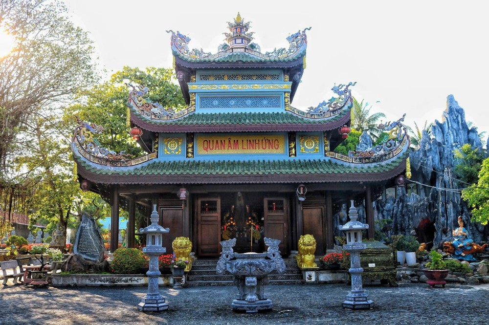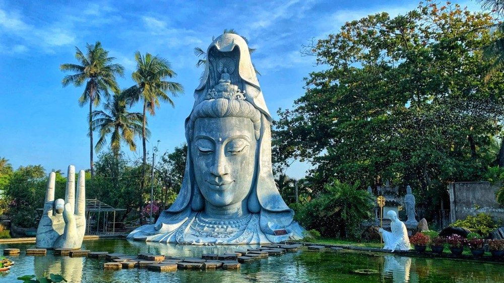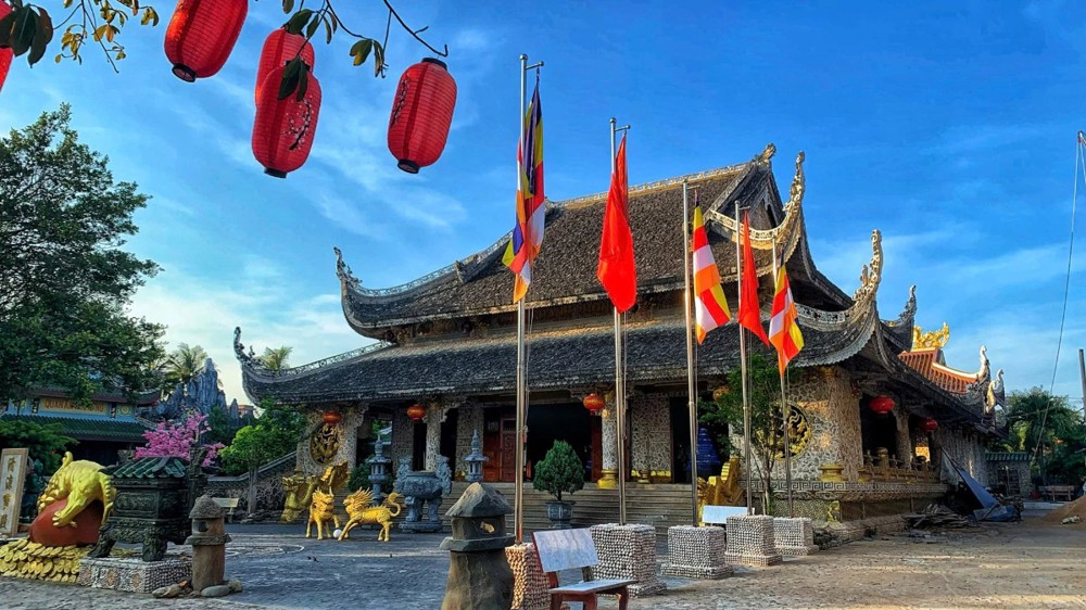 Chùa Thanh Lương - ngôi chùa được ốp san hô, gáo dừa luôn thu hút đông phật tử và khách tham quan. Nơi đây thờ tượng Quan Âm do người dân phát biển ngoài biển.