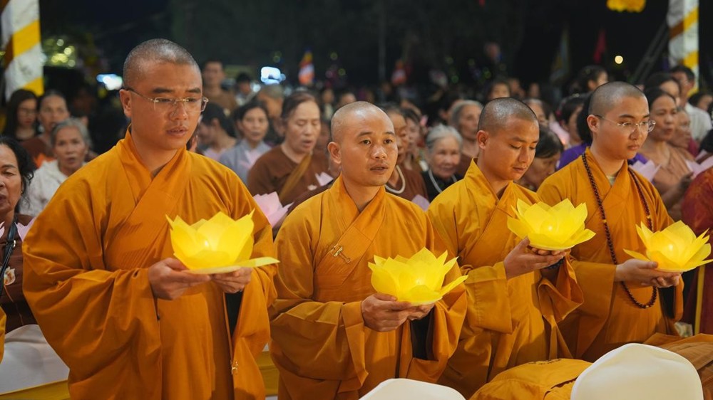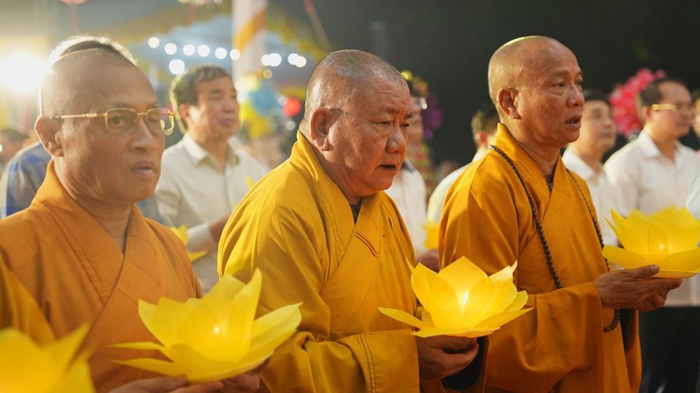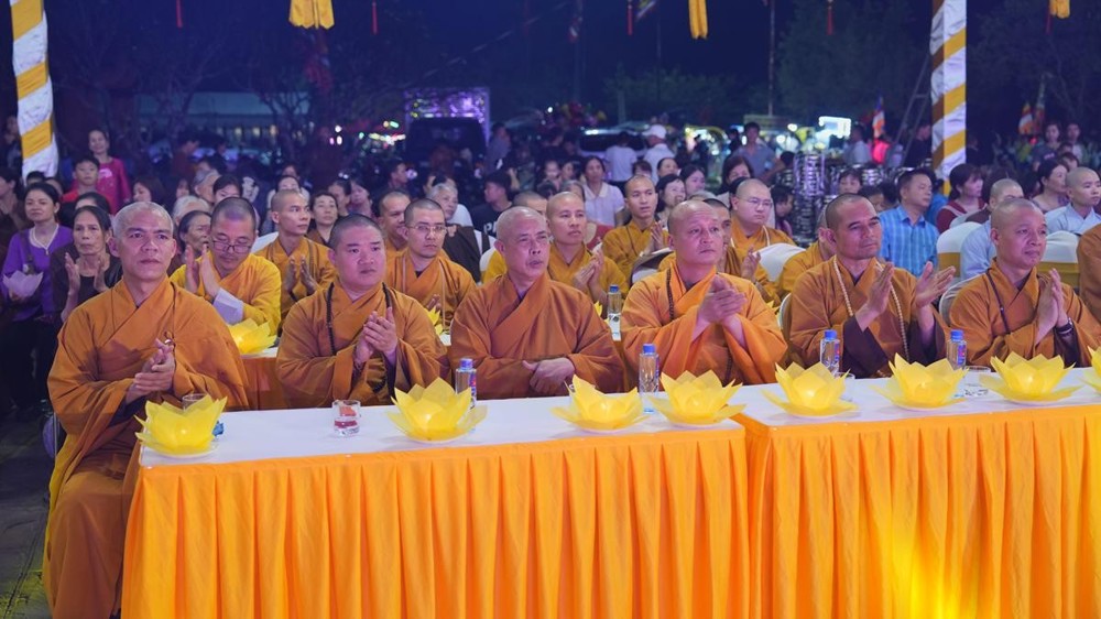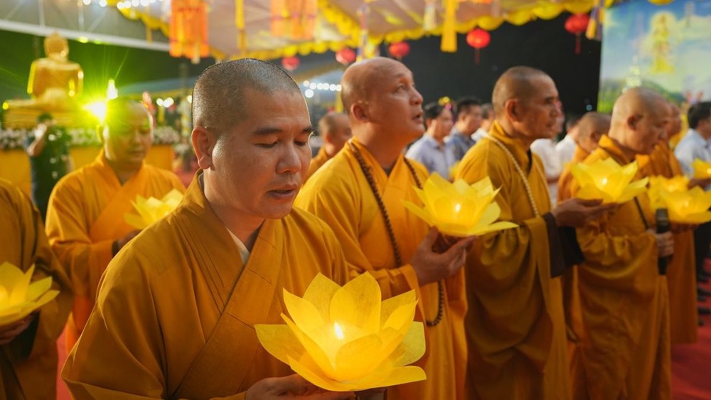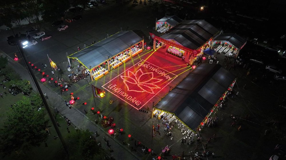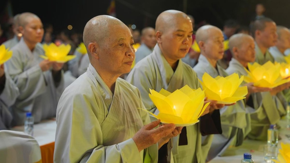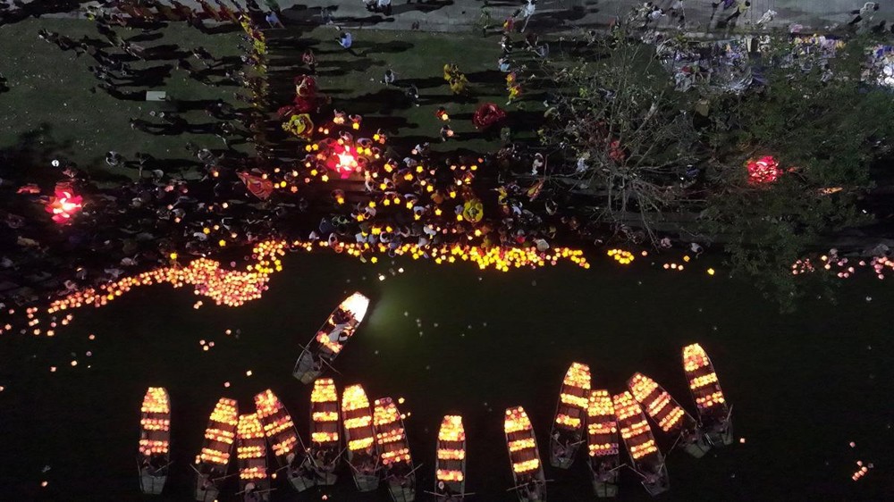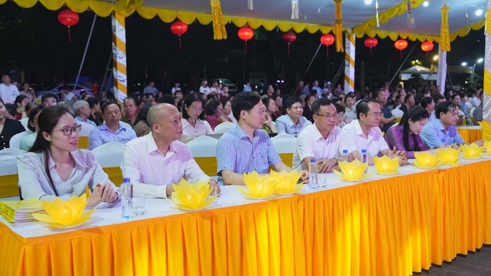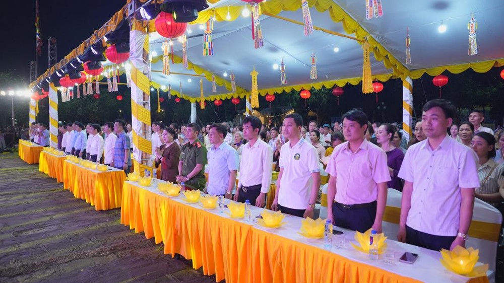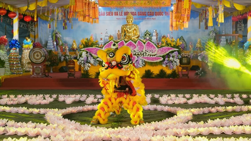 Trong khoảnh khắc trang nghiêm, hàng nghìn hoa đăng được thắp sáng và thả trên dòng nước, kết thành dải ánh sáng lung linh, huyền ảo. Mỗi ngọn đèn là một lời nguyện ước hướng về cội nguồn, lan tỏa niềm tin vào những giá trị thiện lành, hòa bình và hạnh phúc.