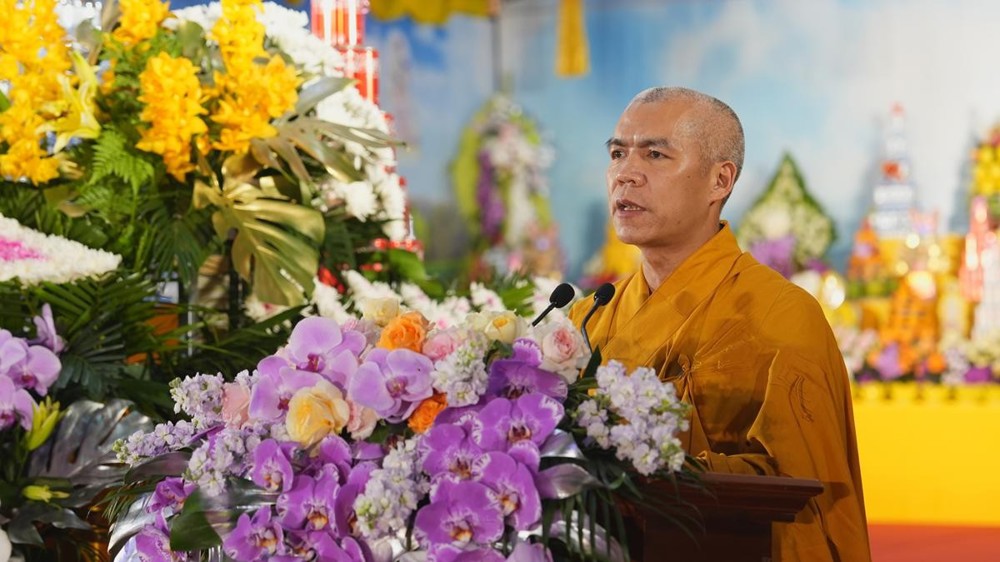 Phát biểu tại buổi lễ, Đại đức Thích Thanh Cương nhấn mạnh: Năm 968, Đinh Bộ Lĩnh lên ngôi Hoàng đế, đặt quốc hiệu Đại Cồ Việt, xây dựng nhà nước phong kiến trung ương tập quyền đầu tiên. Ngay từ buổi đầu dựng nước, Đinh Tiên Hoàng đã sắc phong Thiền sư Ngô Chân Lưu, thể hiện vai trò đồng hành của Phật giáo với dân tộc trong sự nghiệp dựng nước và giữ nước. Tinh thần Hộ quốc an dân được kế thừa, góp phần làm nên bản sắc Phật giáo Việt Nam, luôn gắn bó với phương châm “Đạo pháp – Dân tộc – Chủ nghĩa xã hội”, tích cực tham gia công tác an sinh xã hội, xây dựng đất nước.