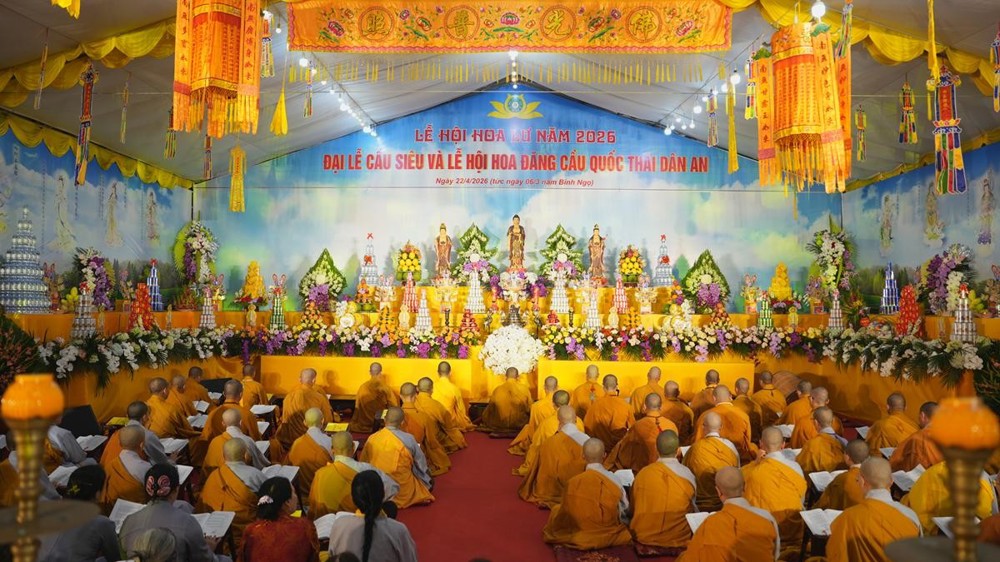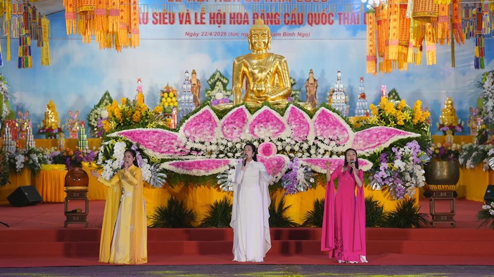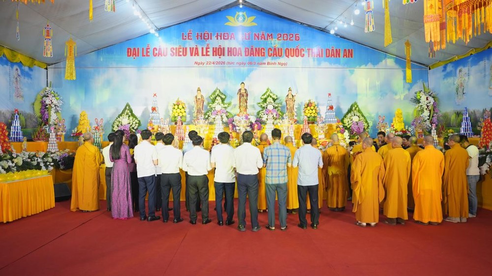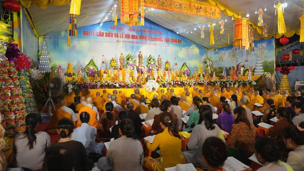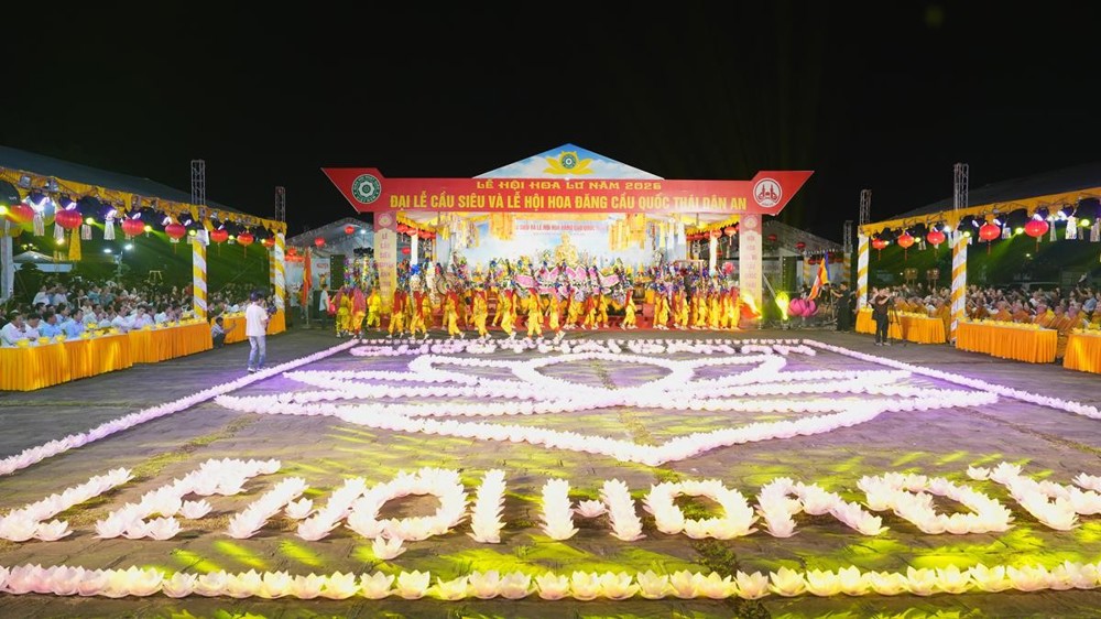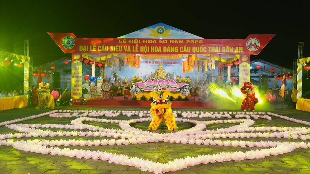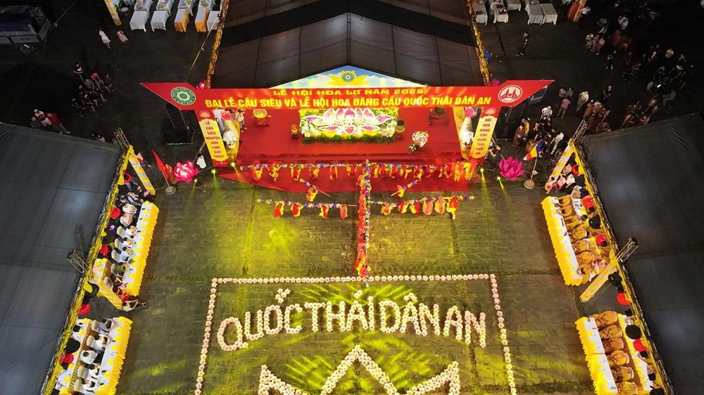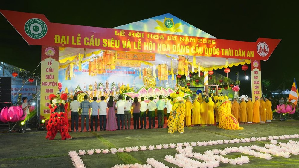 PSO - Trong không gian linh thiêng của Khu di tích Cố đô Hoa Lư nghìn năm lịch sử, tối 22/4 (tức ngày 6/3 ÂL), hàng nghìn Tăng Ni, Phật tử và du khách thập phương đã hội tụ về đây tham dự Đại lễ cầu siêu, Lễ hội hoa đăng cầu Quốc thái dân an trong khuôn khổ Lễ hội Hoa Lư năm 2026, tạo nên không khí trang nghiêm và đậm đà bản sắc văn hóa dân tộc.