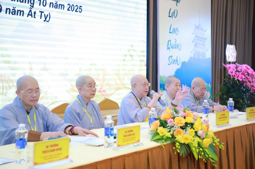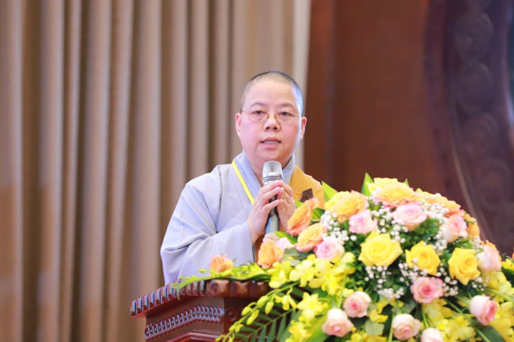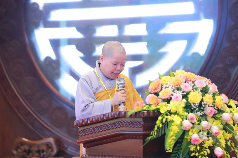 Thay mặt Ban Tổ chức, Ni sư Thích Đàm Thành – Phó Thư ký Phân ban Ni giới Trung ương, đã báo cáo công tác chuẩn bị và nhấn mạnh ý nghĩa thiết thực của Khóa Bồi dưỡng Luật học và Kỹ năng Trụ trì, được tổ chức trong 4 ngày, từ 24 – 27/10/2025.