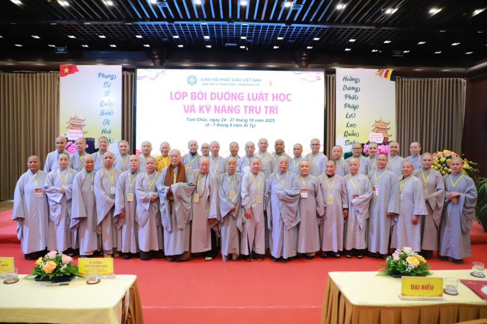 PSO - Theo tinh thần người lãnh chúng phải lấy Giới làm thầy, lấy Từ bi làm gốc và theo kế hoạch của Phân ban Ni giới Trung ương (nhiệm kỳ 2022 - 2027). Sáng ngày 24/10/2025, tại Hội trường chùa Tam Chúc (Ninh Bình), Phân ban Ni giới Trung ương đã trang nghiêm khai mạc Khóa Bồi dưỡng Luật học và kỹ năng trụ trì dành cho chư Ni tại các tỉnh thành phía Bắc trong 4 ngày (từ ngày 24 - 27/10/2025) nhằm bồi dưỡng những kiến thức căn bản về Giới luật và những kỹ năng cần thiết của một vị trụ trì cho chư tôn đức Ni thuộc Ban Trị sự, Phân ban Ni giới, chư Tôn đức Ni trụ trì các tỉnh thành phía Bắc và chư Ni trẻ nâng cao năng lực lãnh đạo, kế thừa và phát huy mạng mạch Phật pháp khiến Chánh pháp được cửu trụ tại nhân gian.
