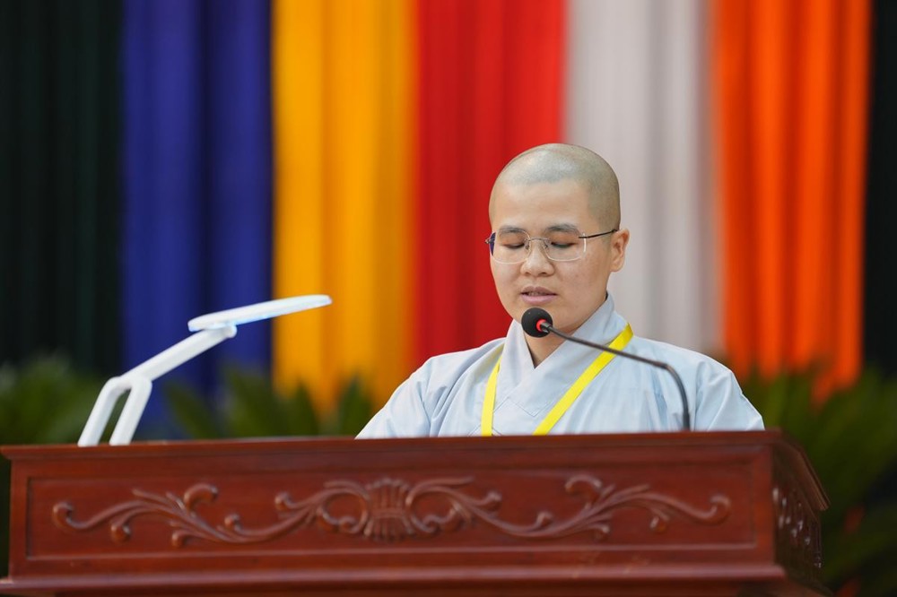 Trong tinh thần lục hòa cộng trụ, Thượng tọa Thích Minh Quang - Ủy viên thư ký HĐTS, Phó trưởng Ban Thường trực BTS GHPGVN tỉnh đã thông qua chương trình và quy chế Đại hội chính thức, đồng thời nhấn mạnh trách nhiệm của từng đại biểu trong việc phát huy trí tuệ và tinh thần trách nhiệm, góp phần vào thành công chung của Đại hội.