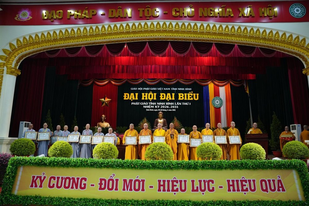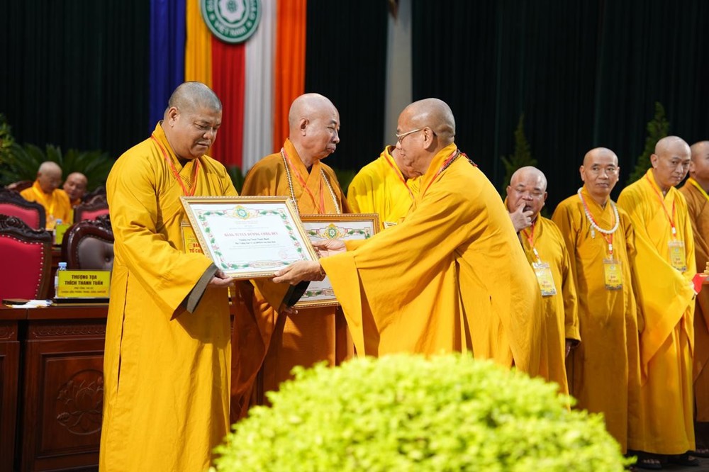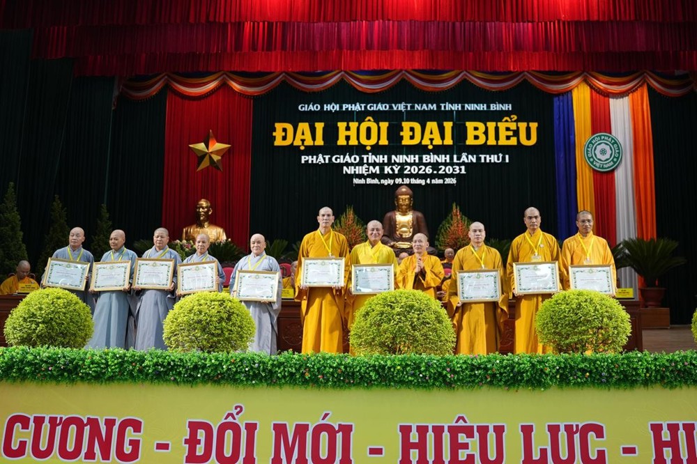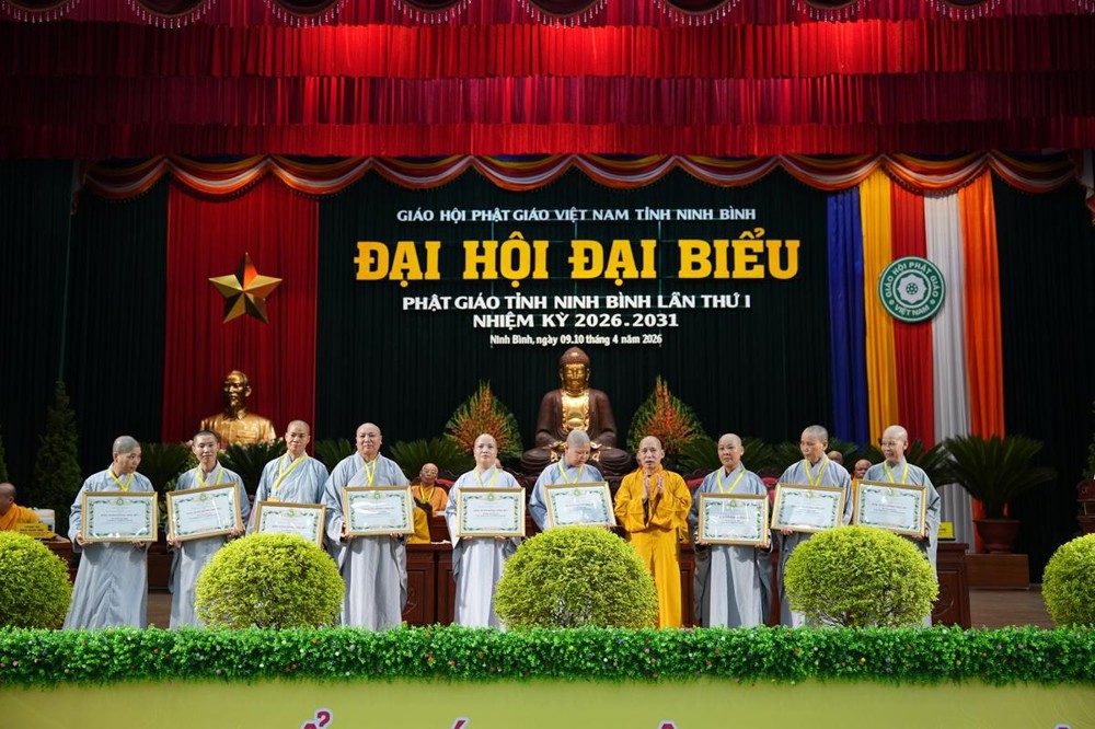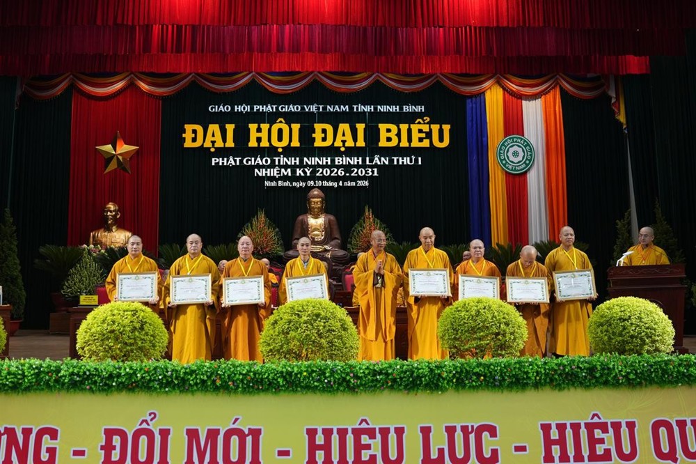 Dịp này, Ban Tổ chức đã công bố các quyết định khen thưởng nhằm ghi nhận đóng góp trong công tác Phật sự. Trong đó, TW GHPGVN trao Bằng tuyên dương công đức cho 81 cá nhân; MTTQVN tỉnh cũng trao Giấy khen cho 1 tập thể Phân ban Ni giới GHPGVN tỉnh và 16 cá nhân. Bên cạnh đó, Ban tổ chức Đại hội cũng tặng quà lưu niệm tri ân sự đóng góp của chư tôn đức Ban trị sự GHPGVN tỉnh Ninh Bình nhiệm kỳ qua.