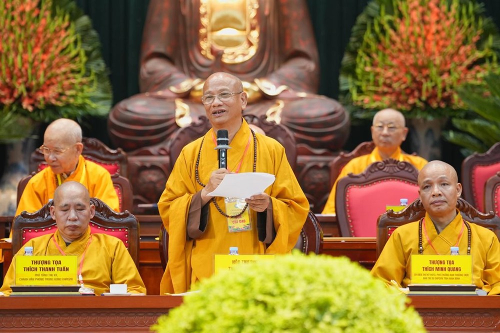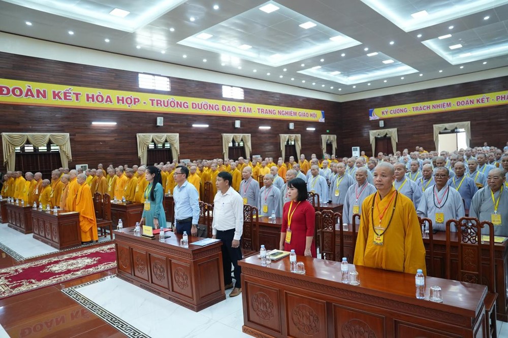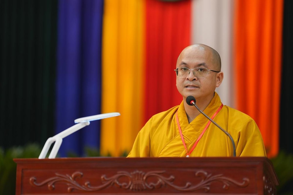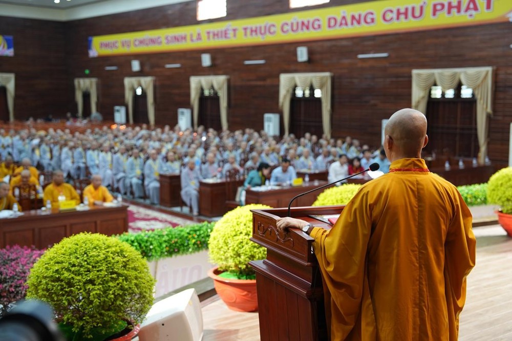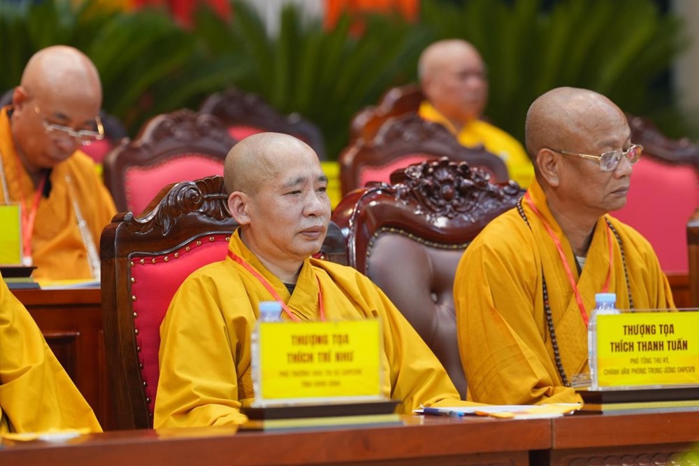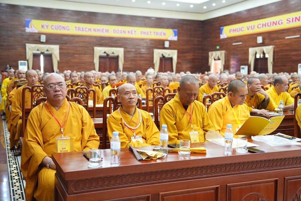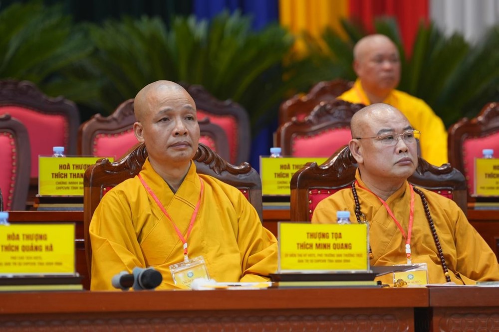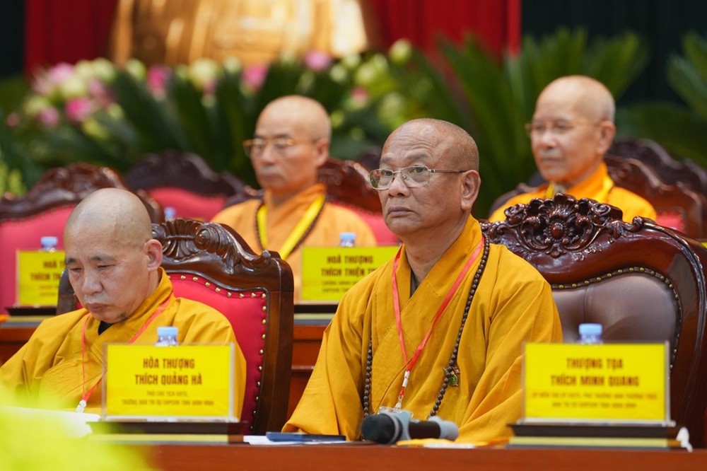 Phát biểu khai mạc, Hòa thượng Thích Quảng Hà thay mặt Ban Trị sự và Ban Tổ chức Đại hội bày tỏ niềm tri ân sâu sắc đến chư tôn giáo phẩm và quý đại biểu đã quang lâm chứng minh, tham dự. Hòa thượng nhấn mạnh, Đại hội lần này mang chủ đề “Kỷ cương – Đổi mới – Hiệu lực – Hiệu quả”, không chỉ là khẩu hiệu hành động mà còn là phương châm tu học và phụng sự, thể hiện tinh thần nhập thế tích cực của Phật giáo trong thời đại mới.
