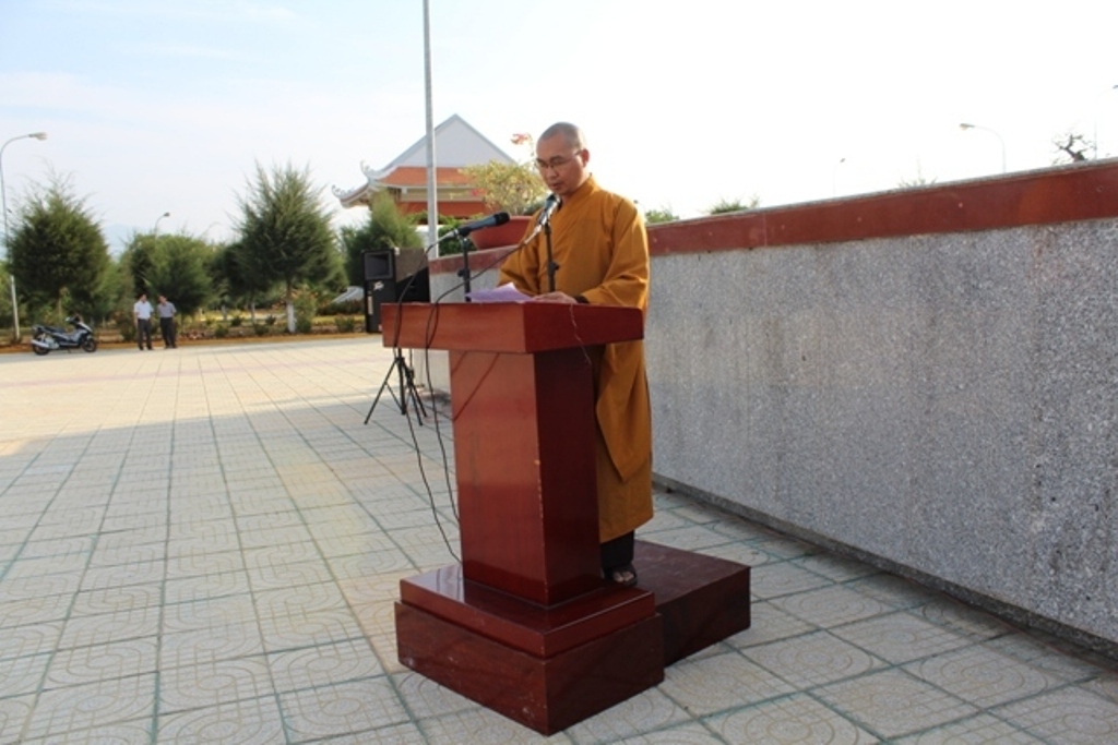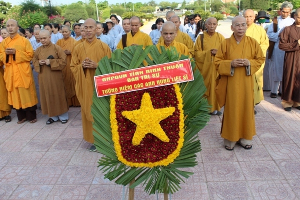 Tại buổi lễ, đại diện Ban Thường trực BTS GHPGVN, ĐĐ. Thích Pháp Quang xướng tụng nghi thức niêm hương Tưởng niệm các Anh hùng Liệt sĩ, bày tỏ lòng biết ơn, thành kính đốt nén tâm hương, đặt vòng hoa, lễ phẩm dâng lên Tưởng niệm, tỏ lòng tri ân đến chư vị anh linh, chiến sĩ đã vì quốc vong thân để đổi lấy nền độc lập tự do cho đất nước, cũng như tự nhắc nhở trách nhiệm của người xuất gia là phải thực hành đúng chánh pháp, xây dựng nếp sống tốt đời đẹp đạo, nhân dân ấm no hạnh phúc, cùng nhau đoàn kết, xây dựng quê hương Việt Nam ngày càng giàu đẹp.