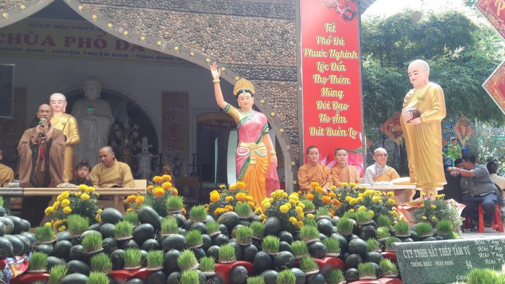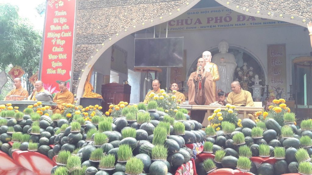 PSO - Hòa trong không khí mùa xuân đang hiện hữu trên quê hương, sáng ngày 14/2/2019 (10/1/ Kỷ Hợi) tại chùa Phổ Đà Sơn - Thôn Bàu Ngứ, xã Phước Dinh, huyện Thuận Nam, Đại đức Thích Minh Tánh, Phó Ban Trị Sự (BTS) Trưởng Ban Hoằng pháp Phật giáo tỉnh, Trụ trì chùa Phổ Đà Sơn, đã tổ chức họp mặt đầu xuân Kỷ Hợi.