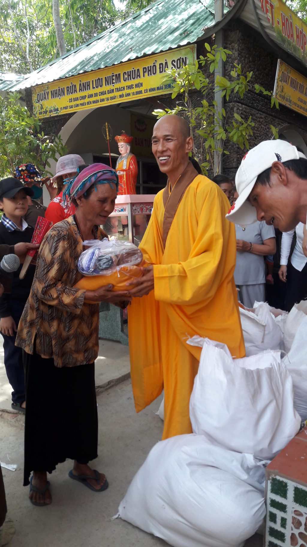 Tiếp theo là phần thân tặng quà chúc mừng, thể hiện tình đoàn kết hòa hợp của các tự viện cũng như là quý lãnh đạo chính quyền các cấp trực thuộc tỉnh, huyện. Sau là đến phần kinh hành làm lễ tắm Phật nhân mùa Phật đản này. Buổi lễ kết thúc trong niềm hoan hỷ. Được biết Chùa Phổ Đà Sơn kết hợp với phái đoàn Từ thiện đến từ tỉnh Tiền Giang trao, phát quà đến với đồng bào dân tộc vùng sâu vùng xa.
