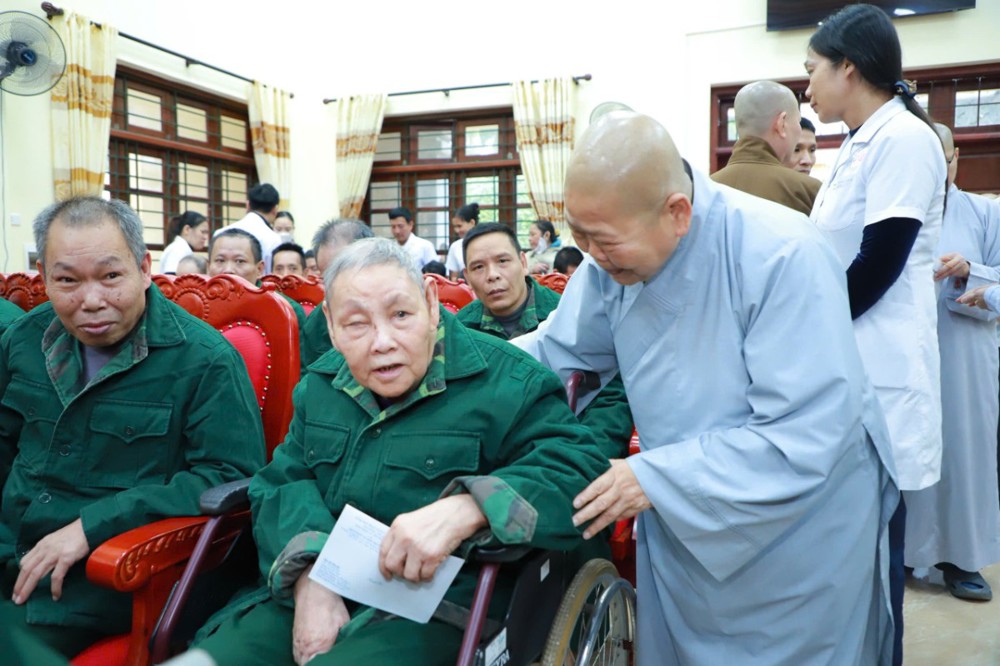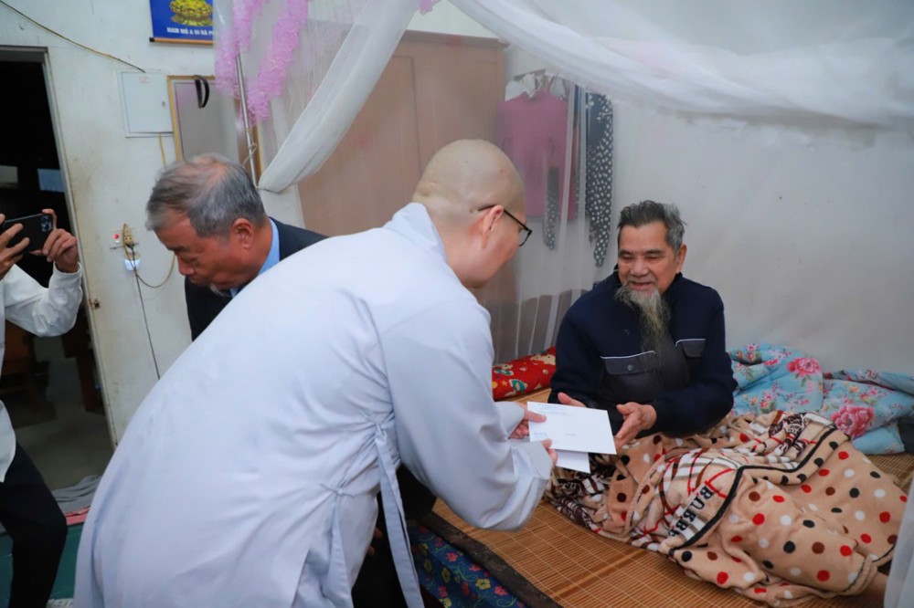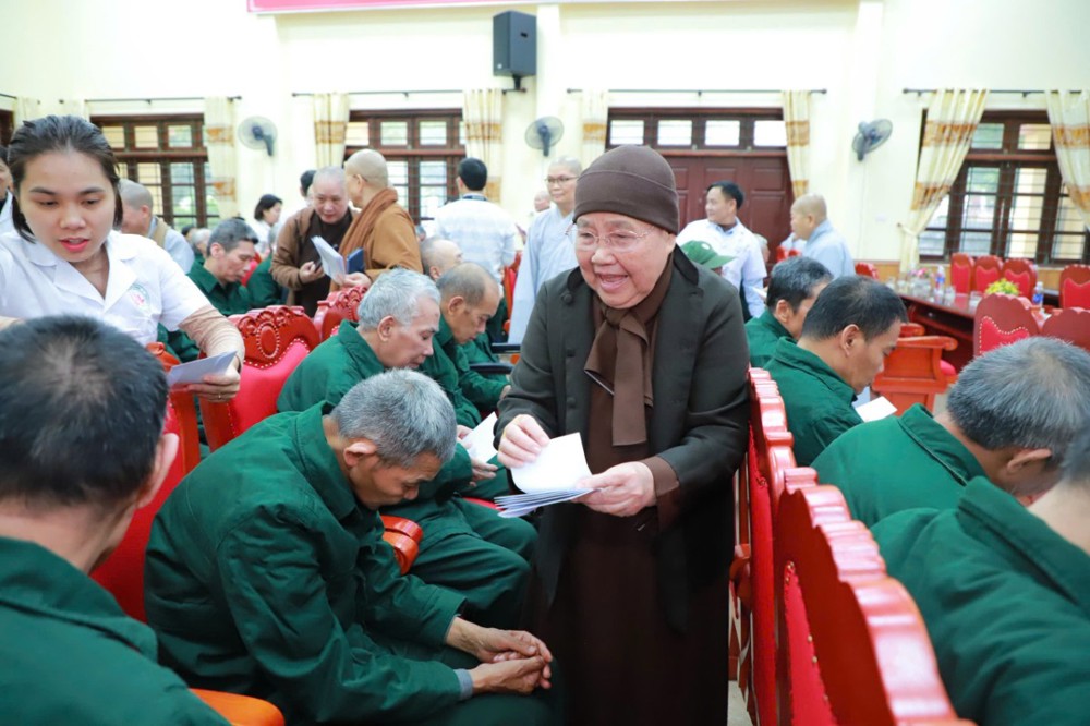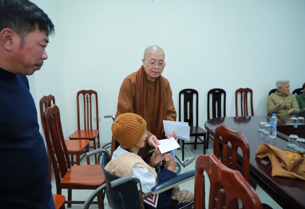 Tại đây, Ni trưởng Thích Nữ Tịnh Nghiêm đã ân cần thăm hỏi, động viên và gửi lời chúc đến các cụ, các bệnh nhân luôn được an lành, khỏe mạnh, sống vui trong tình thương của đại chúng.