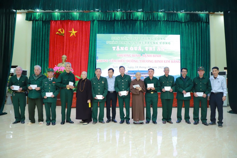 Tại Trung tâm điều dưỡng thương binh Kim Bảng, đoàn đã trao 104 phần quà (mỗi phần trị giá 1 triệu đồng) đến các thương binh đang điều trị, đồng thời gửi tặng 20 triệu đồng đến Ban Giám đốc và tập thể cán bộ, nhân viên của Trung tâm – như lời tri ân đến những người đã và đang phụng sự, chăm sóc cho các thương binh.