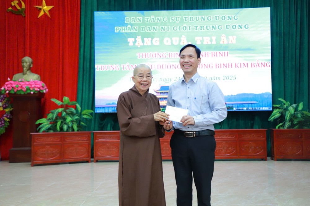 PSO – Nhân dịp tổ chức Khóa Bồi dưỡng Luật học và kỹ năng trụ trì tại chùa Tam Chúc (tỉnh Ninh Bình), chiều ngày 24/10/2025, Phân ban Ni giới Trung ương đã tổ chức chương trình từ thiện, đến thăm và tặng quà tại Trung tâm điều dưỡng thương binh Kim Bảng và Trung tâm bảo trợ xã hội Hà Nam.