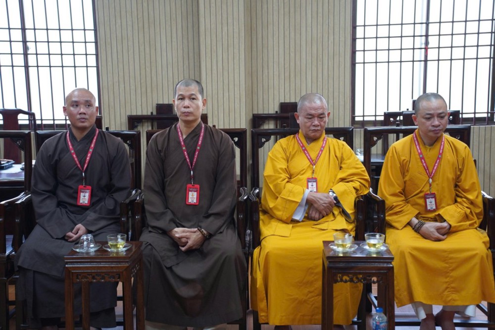 Tiếp đón đoàn có: Thượng tọa Thích Phước Nguyên – Phó Tổng Thư ký, Chánh Văn phòng II Trung ương GHPGVN; Thượng tọa Thích Quảng Tiến – Ủy viên HĐTS, Phó Văn phòng II Trung ương GHPGVN cùng chư Tôn đức Tăng Ni, cán bộ, nhân viên Văn phòng II Trung ương.