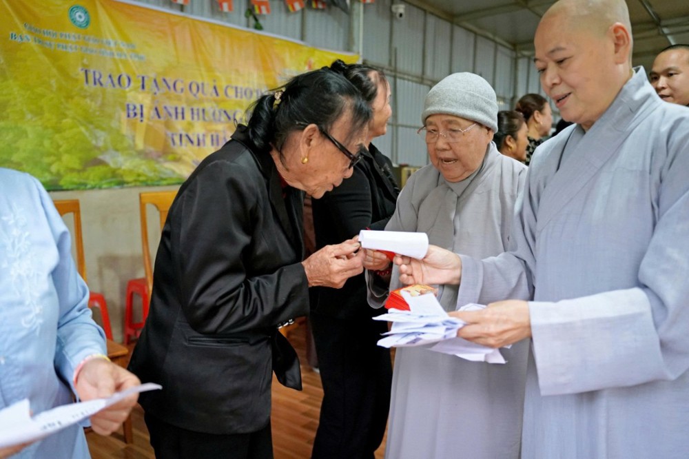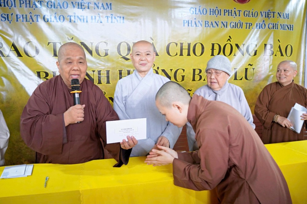 Tại Hà Tĩnh, đoàn đã trao 500 phần quà, mỗi phần trị giá 1 triệu đồng tiền mặt, hỗ trợ bà con vượt qua khó khăn. Tính chung trong toàn chuyến cứu trợ lần này, Phân ban Ni giới GHPGVN TP. Hồ Chí Minh đã trao hơn 2.000 phần quà cùng tịnh tài hỗ trợ các ngôi chùa bị thiệt hại, với tổng kinh phí hơn 2,2 tỷ đồng.