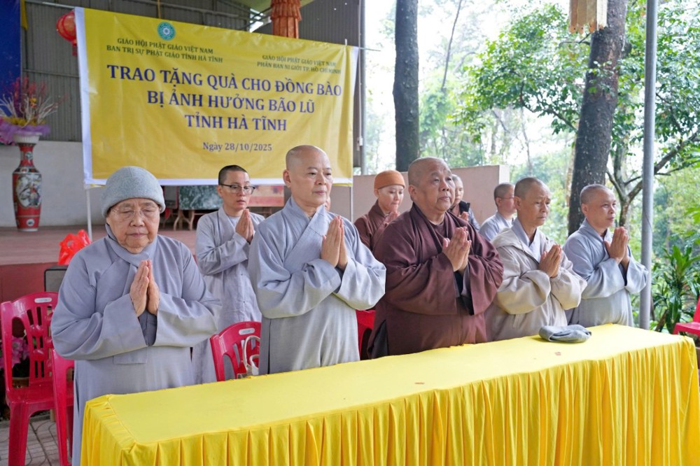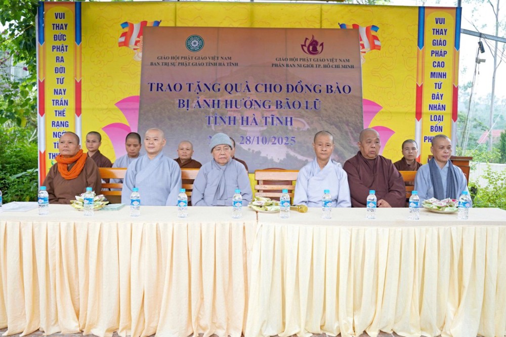 PSO - Tiếp nối hành trình cứu trợ đồng bào miền Trung chịu ảnh hưởng bởi thiên tai trong tháng 9 và tháng 10 vừa qua, ngày 28/10/2025, Phân ban Ni giới GHPGVN TP. Hồ Chí Minh đã đến tỉnh Hà Tĩnh trao tặng quà cứu trợ cho bà con Phật tử tại các địa phương chịu thiệt hại nặng nề do bão số 5 và số 10.