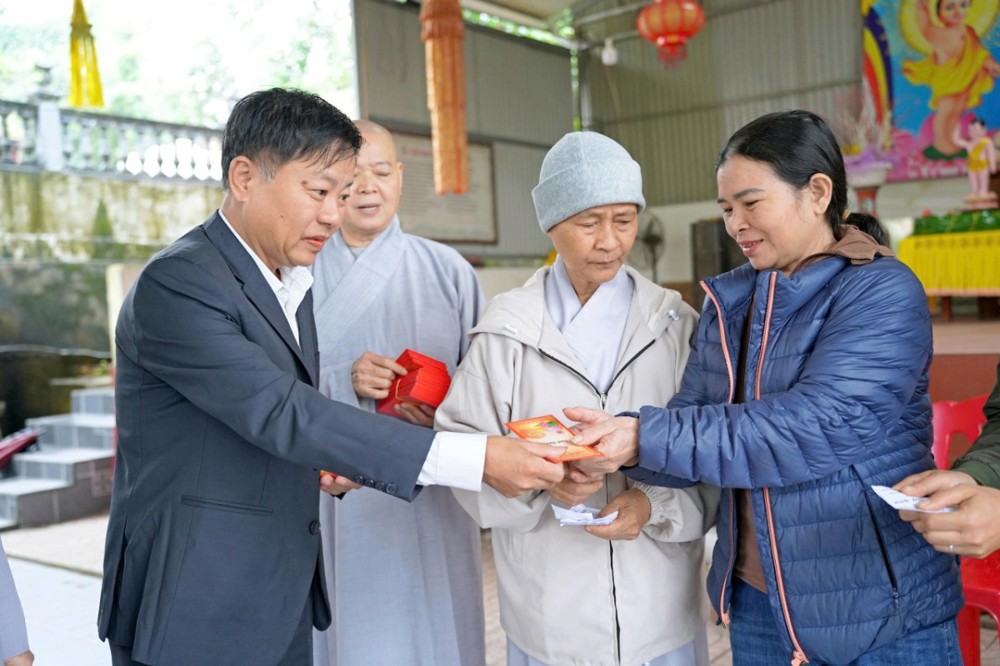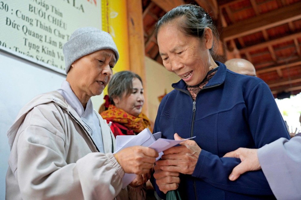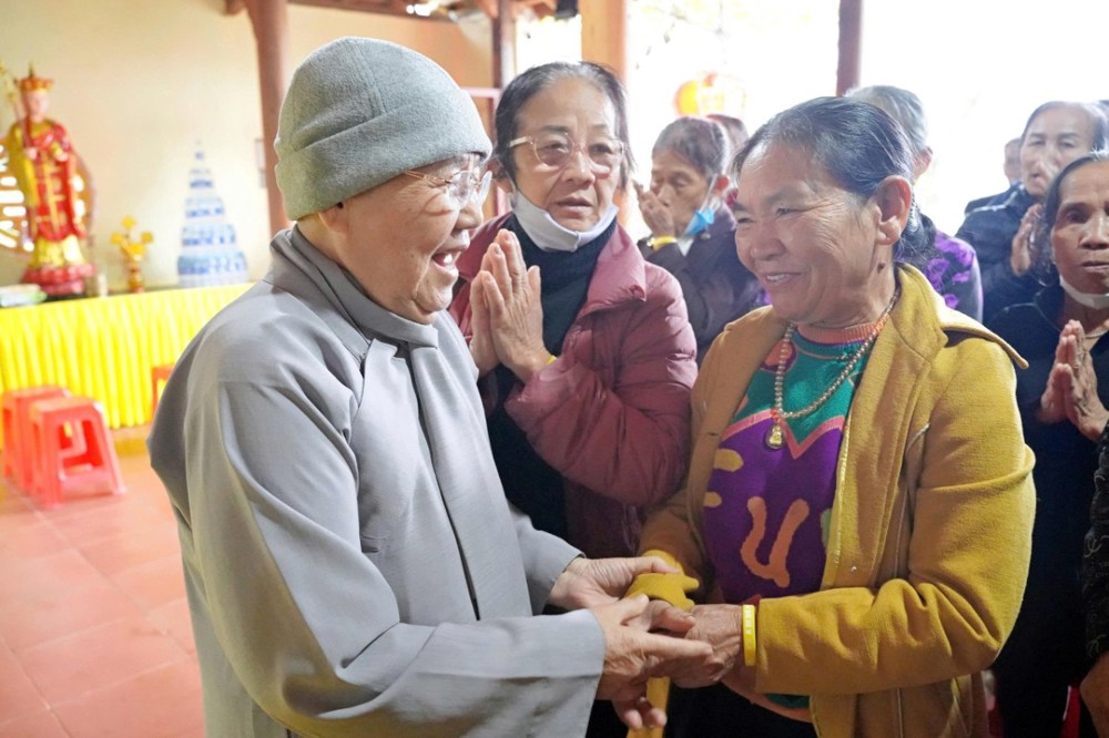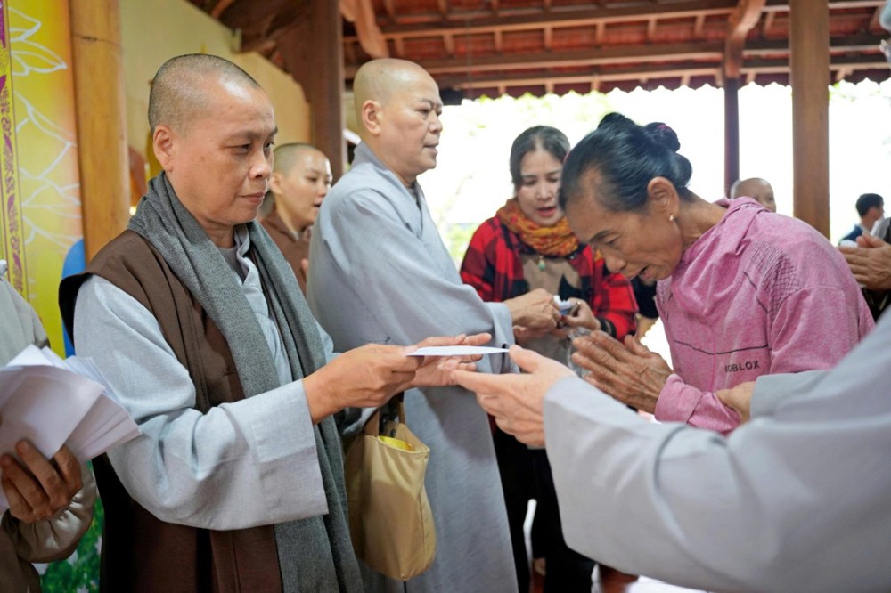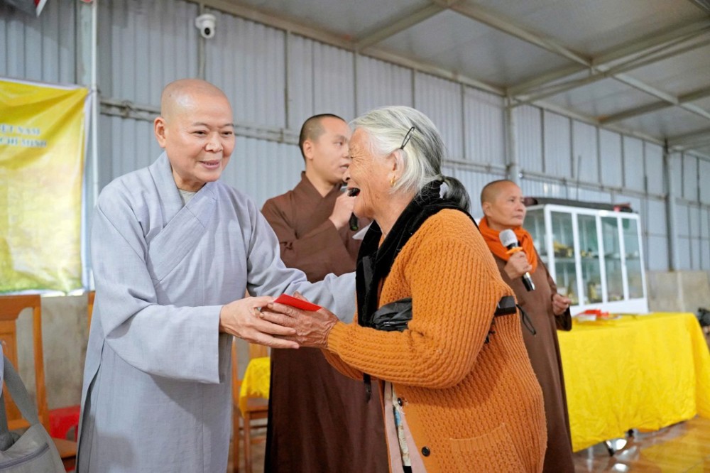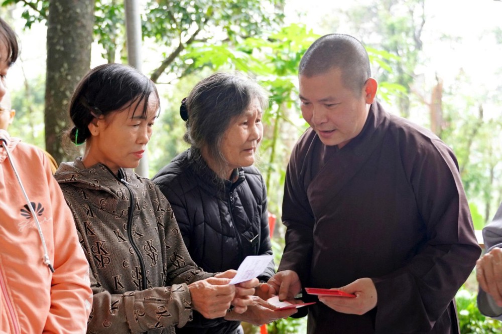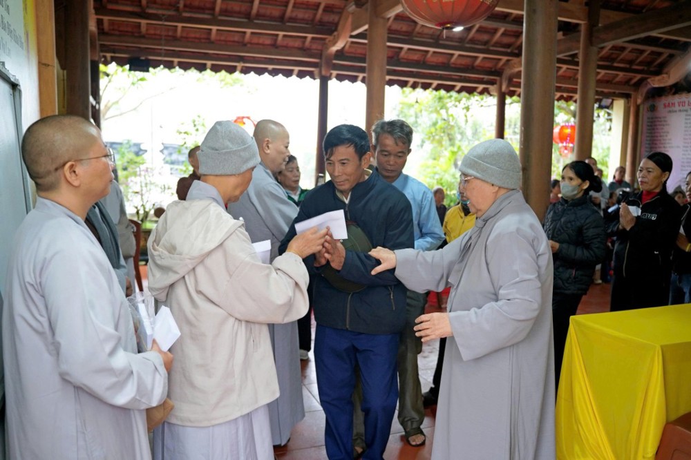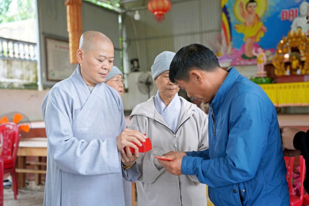 Tại mỗi điểm đến, Ni sư Thích Nữ Lệ Thuận – Phó Phân ban Ni giới Trung ương, Phó Phân ban Ni giới GHPGVN TP. Hồ Chí Minh, thay mặt đoàn ân cần thăm hỏi, động viên và khuyến tấn bà con Phật tử luôn giữ tâm bình an, tinh tấn niệm Phật để được chư Phật mười phương gia hộ, sớm vượt qua khó khăn sau thiên tai.