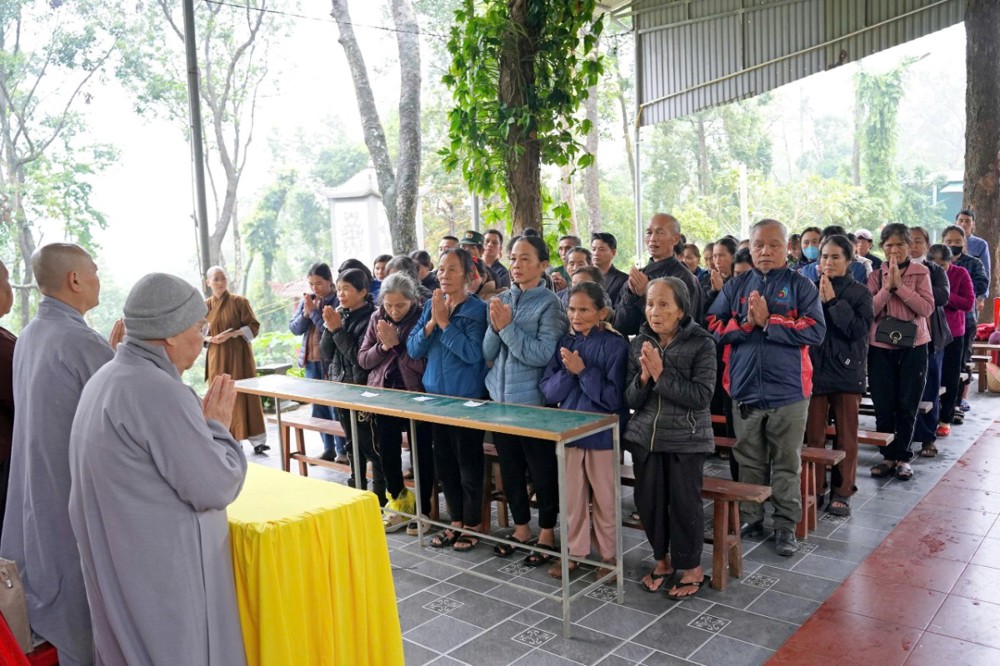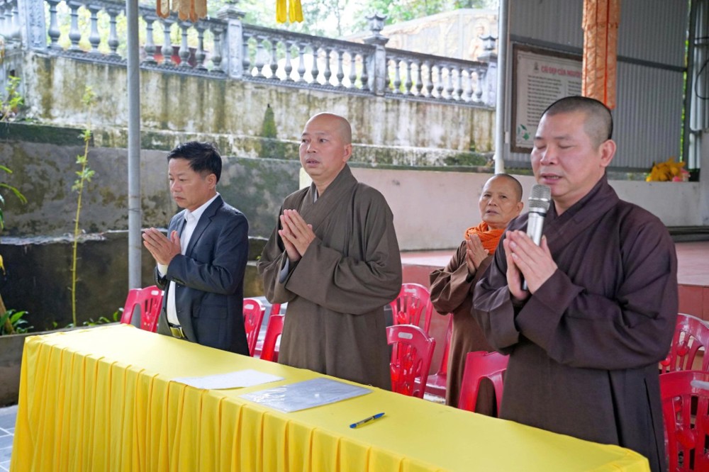 Tiếp đón phái đoàn có: TT. Thích Tâm Phương – Trưởng ban Nghi lễ GHPGVN tỉnh Hà Tĩnh; ĐĐ. Thích Chúc Giác – Trưởng ban Hoằng pháp Phật giáo tỉnh; ĐĐ. Thích Nghiêm Thuận – Ủy viên Thường trực BTS, Trưởng ban Thông tin – Truyền thông Phật giáo tỉnh; ĐĐ. Thích Tục Hiền – Phó Văn phòng BTS Phật giáo tỉnh; NS. Thích Diệu Tỉnh – Trưởng Phân ban Ni giới GHPGVN tỉnh; cùng chư Tôn đức Tăng Ni và đại diện chính quyền các địa phương thân mật tiếp đoàn.