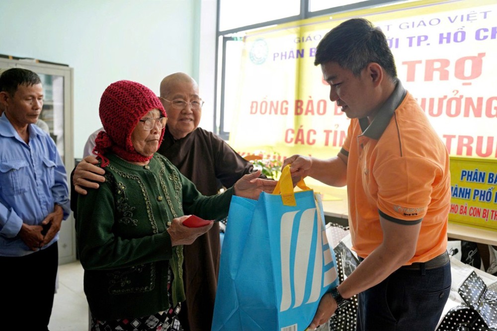 PSO - Ngày 02/12/2025, Phân ban Ni giới GHPGVN TP.HCM đã đến tỉnh Gia Lai trao quà hỗ trợ người dân chịu ảnh hưởng nặng nề bởi bão số 14 và đợt lũ lụt lịch sử vừa qua tại phường Quy Nhơn Bắc và Trường Trung cấp Phật học (TCPH) Nguyên Thiều – xã Tuy Phước Bắc (thuộc tỉnh Bình Định cũ trước đây).