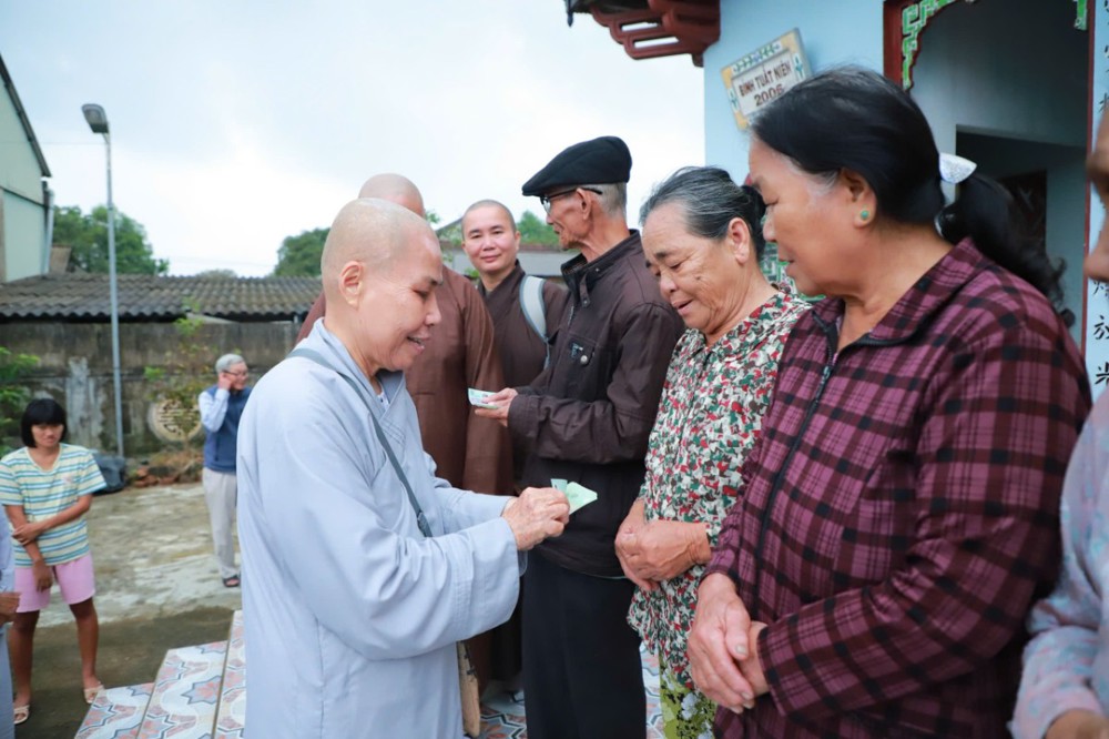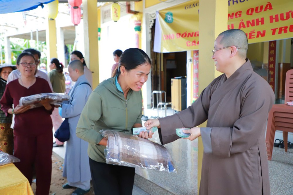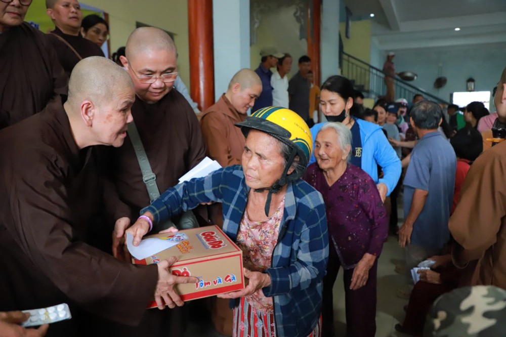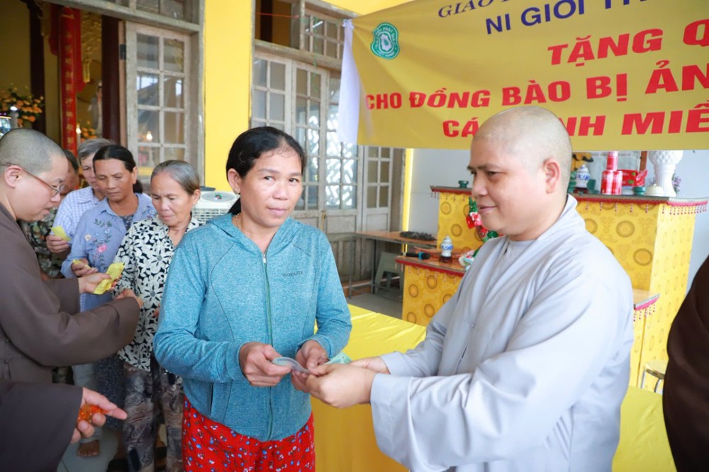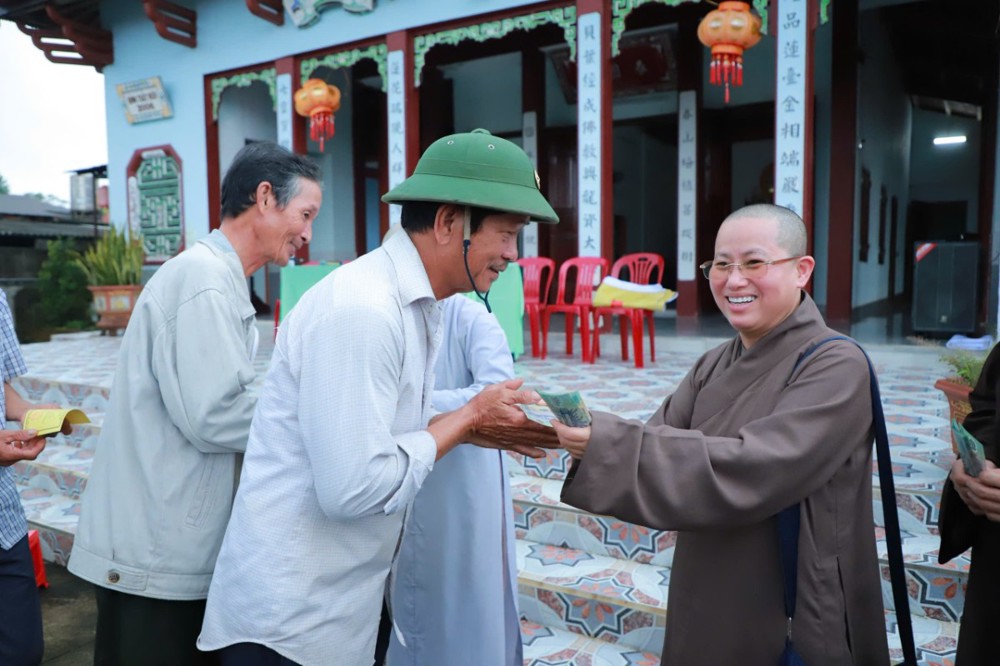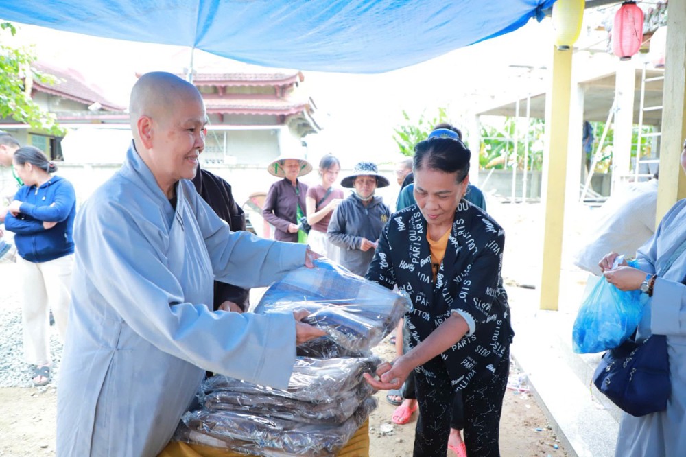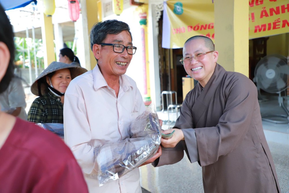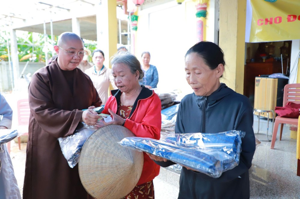 Ni sư xúc động chia sẻ: “Chúng con chỉ mong những phần quà nhỏ bé này có thể phần nào xoa dịu nỗi đau của bà con sau cơn bão, giúp quý vị thêm vững lòng tin vào cuộc sống, tiếp tục lao động, sản xuất, chuẩn bị đón Tết cổ truyền trong an vui, đủ đầy.”