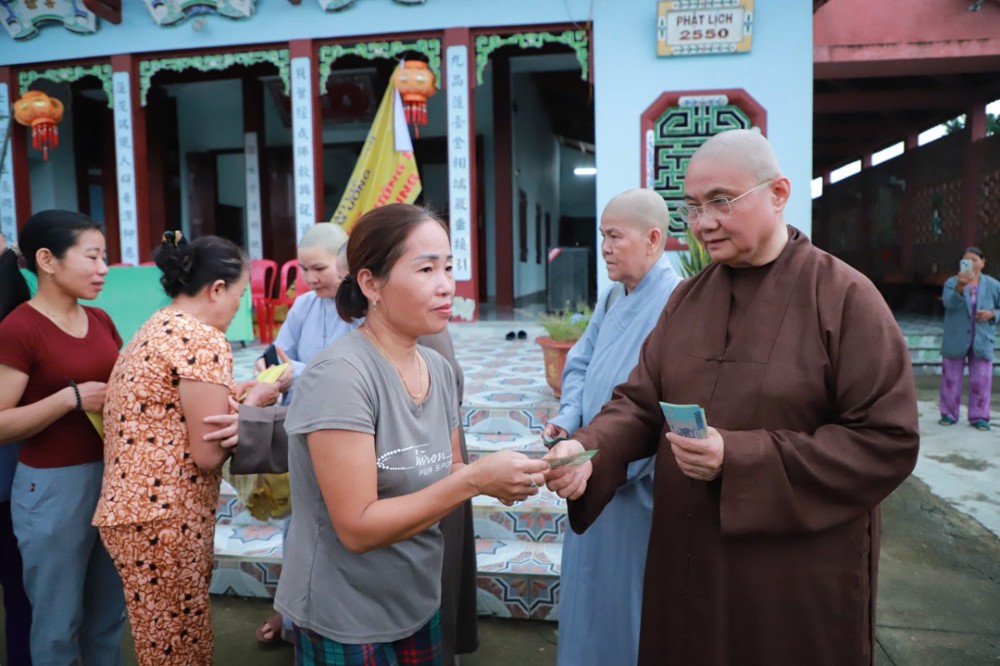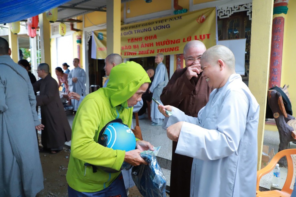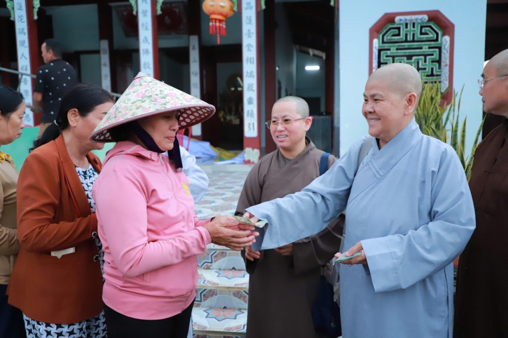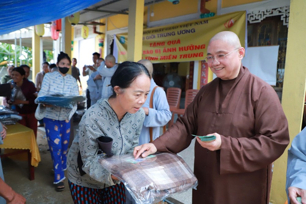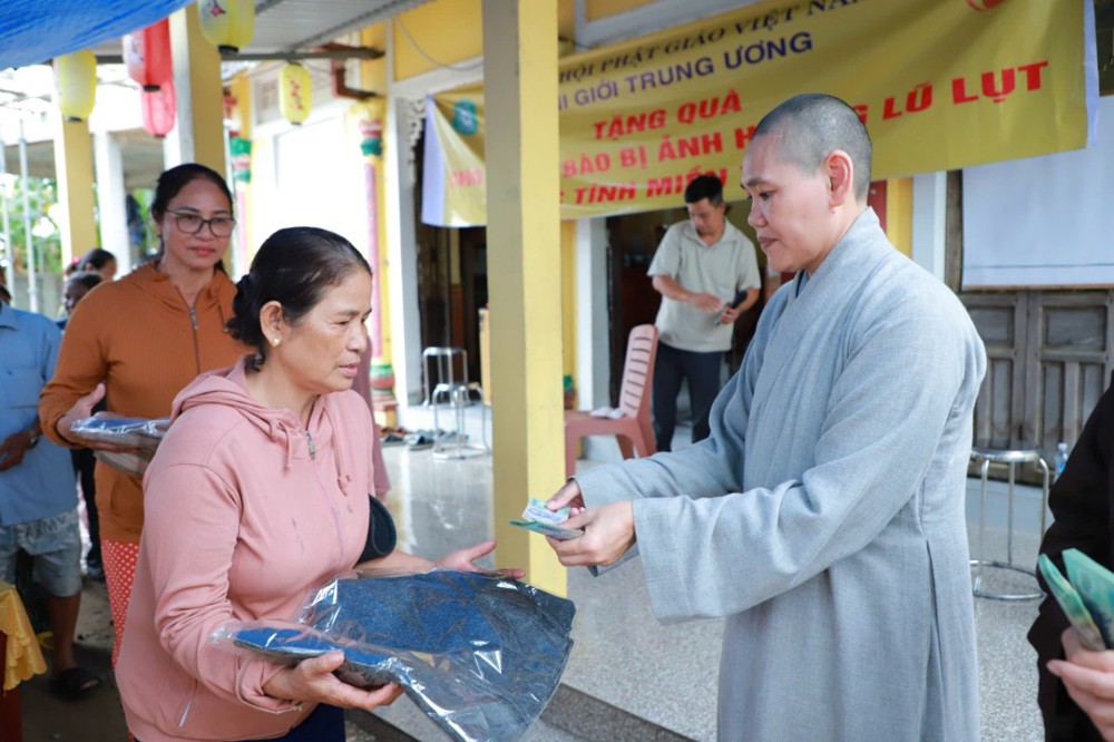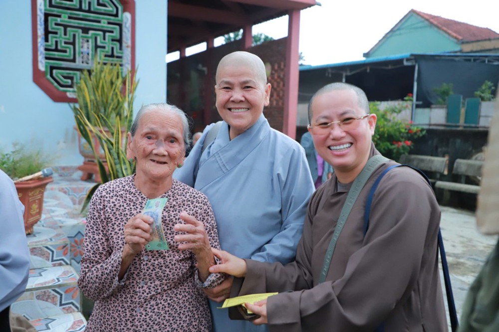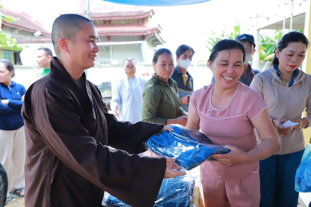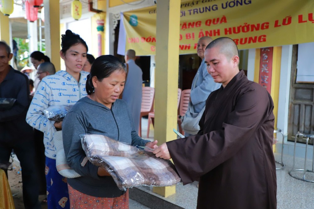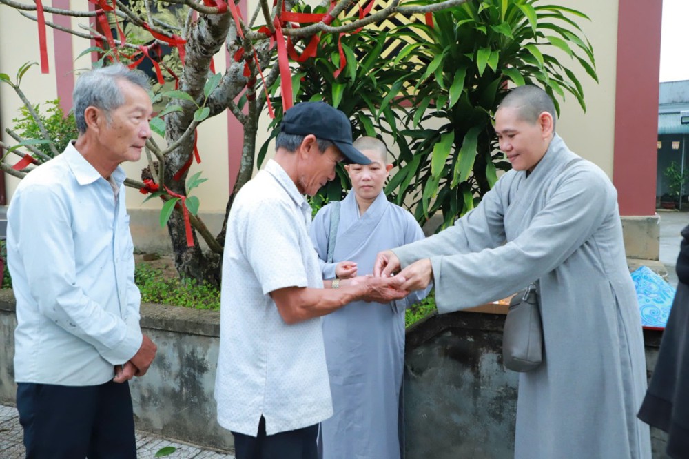 Ni sư xúc động chia sẻ: “Chúng con chỉ mong những phần quà nhỏ bé này có thể phần nào xoa dịu nỗi đau của bà con sau cơn bão, giúp quý vị thêm vững lòng tin vào cuộc sống, tiếp tục lao động, sản xuất, chuẩn bị đón Tết cổ truyền trong an vui, đủ đầy.”