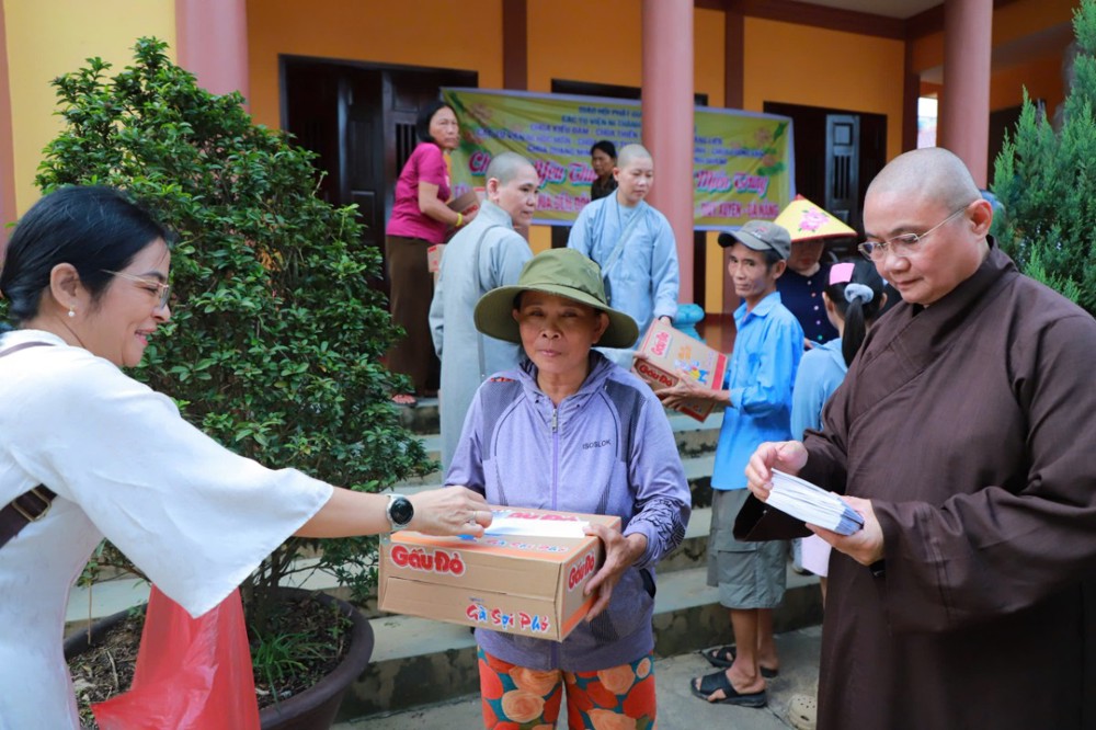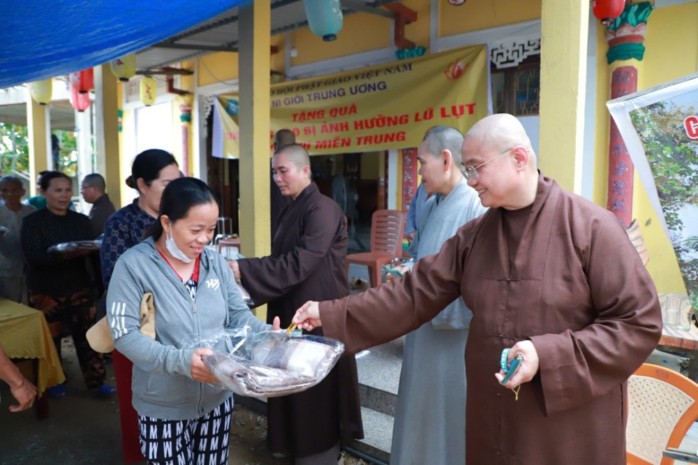 Buổi chiều cùng ngày, đoàn tiếp tục di chuyển đến TP. Huế, trao tặng 400 phần quà tại chùa Khê Xá và chùa Phước Lộc (huyện Phú Vang, TP. Huế).