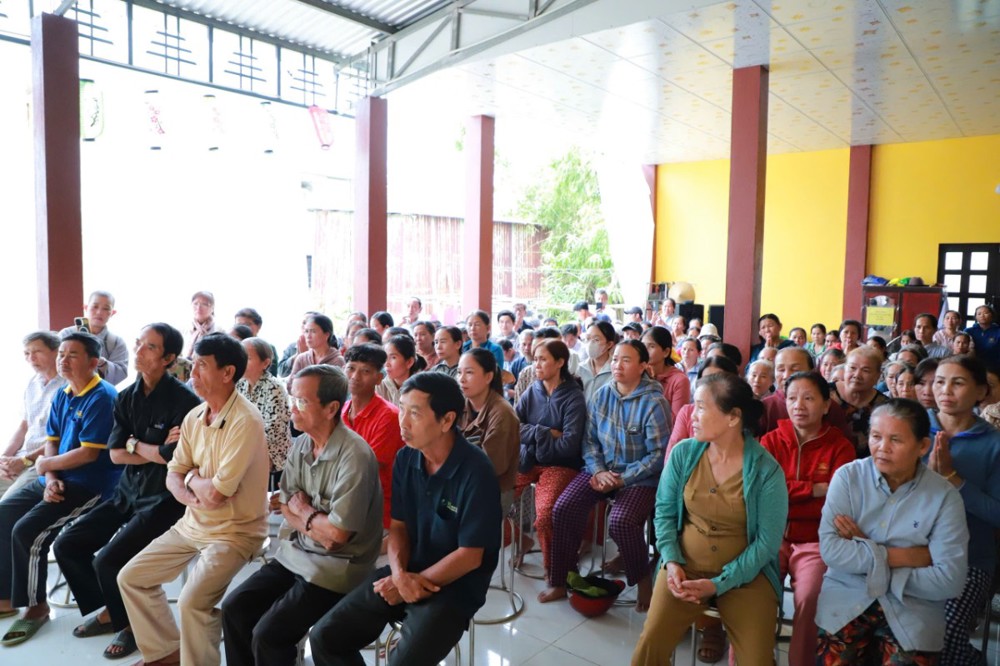 Đón tiếp và hướng dẫn đoàn có Ni trưởng Thích Nữ Như Minh – Phó PBNG TƯ, đặc trách khu vực miền Trung; Ni trưởng Thích Nữ Diệu Đàm – Ủy viên Ban Từ thiện xã hội PBNG TƯ; Ni sư Thích Nữ Minh Thuận – Phó Thư ký PBNG TƯ; cùng Sư cô Thích Nữ Minh Đăng – Trụ trì chùa Khê Xá và Sư cô Thích Nữ Minh Ngộ – Trụ trì chùa Phước Lộc.
