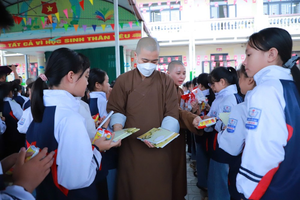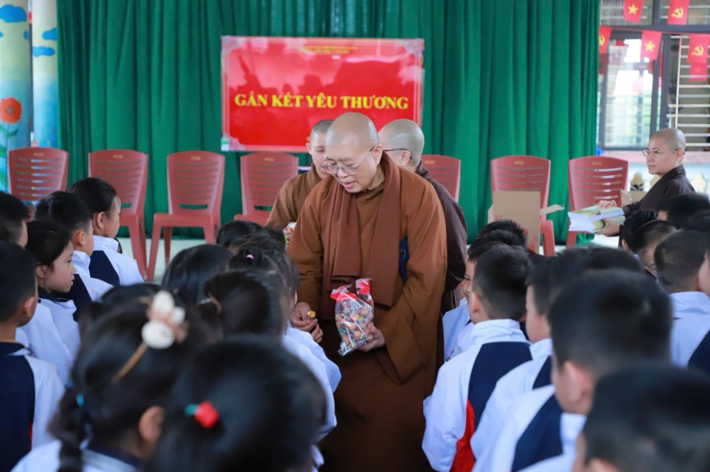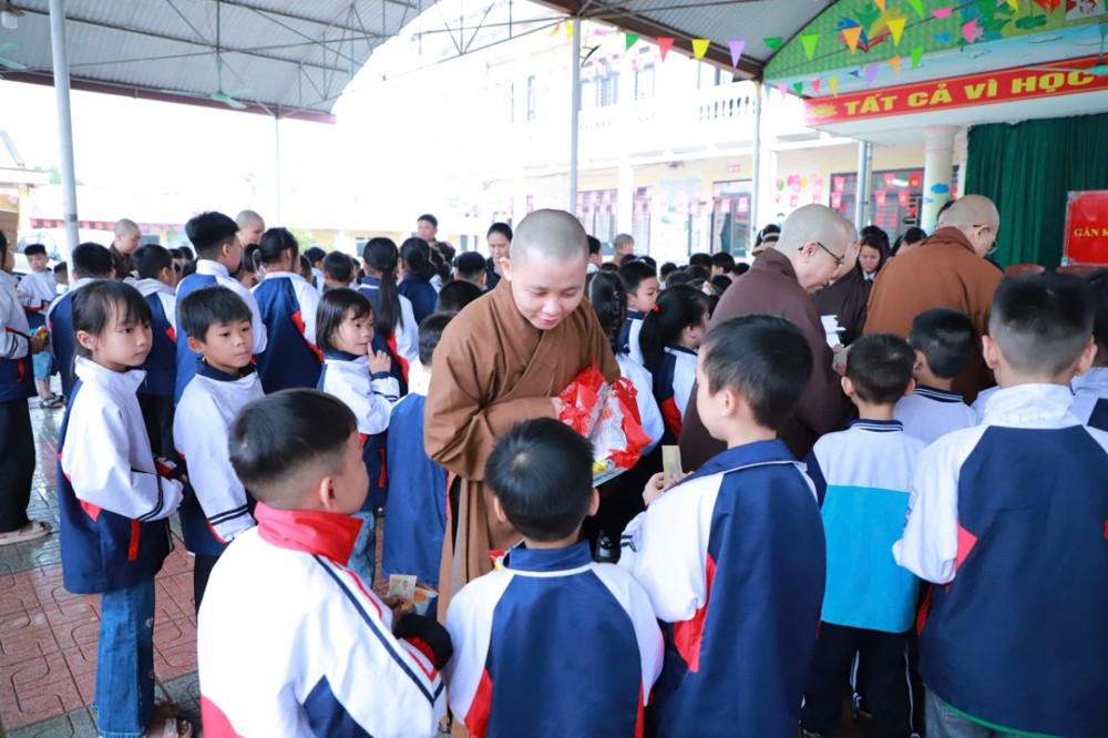 Cũng trong dịp này, đoàn Phân ban Ni giới Trung ương còn gửi tặng quà bánh và đồ dùng học tập đến học sinh hai điểm Trường Tiểu học Cam Giá (TP.Thái Nguyên), góp phần động viên tinh thần học tập cho các em nhỏ sau mùa mưa bão, khơi dậy trong các em niềm vui và nghị lực vươn lên giữa khó khăn.