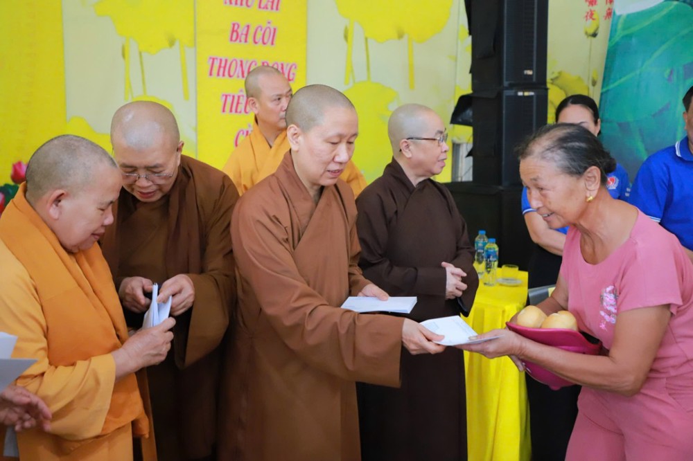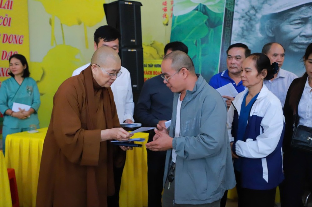 Bên cạnh 1.000 phần quà gửi đến bà con, đoàn còn hỗ trợ 30 triệu đồng đến 6 ngôi chùa bị ngập sâu, trong đó mỗi chùa được 5 triệu đồng, để khắc phục hậu quả, tu sửa nơi sinh hoạt tu học.