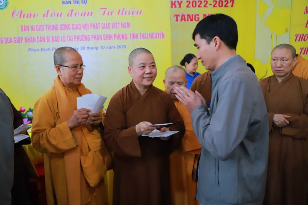 Đại diện Phật giáo tỉnh Thái Nguyên, Thượng tọa Thích Nguyên Thành phát biểu: “Dù bão lũ đã qua, nhưng những mất mát vẫn còn đó. Sự quan tâm của Giáo hội và Ni giới Trung ương là nguồn động viên lớn lao, giúp bà con thêm niềm tin, nghị lực để vươn lên trong cuộc sống.”