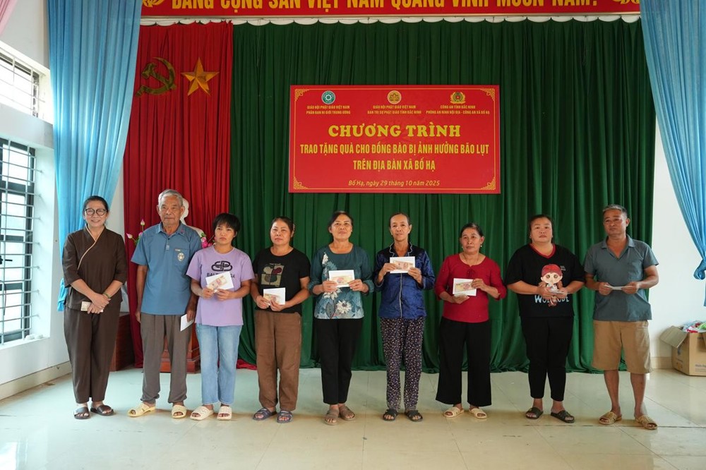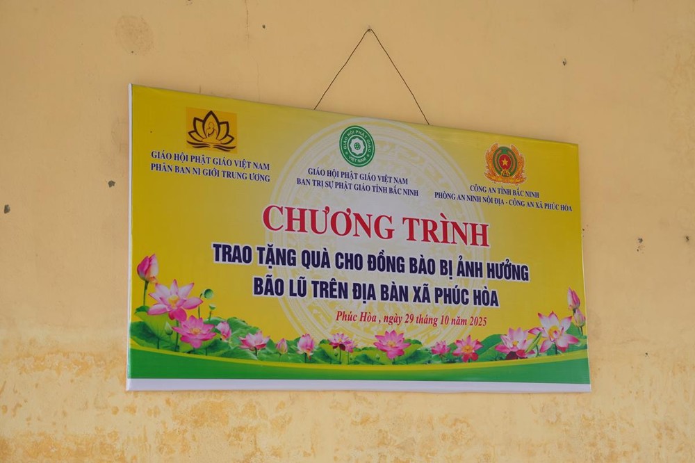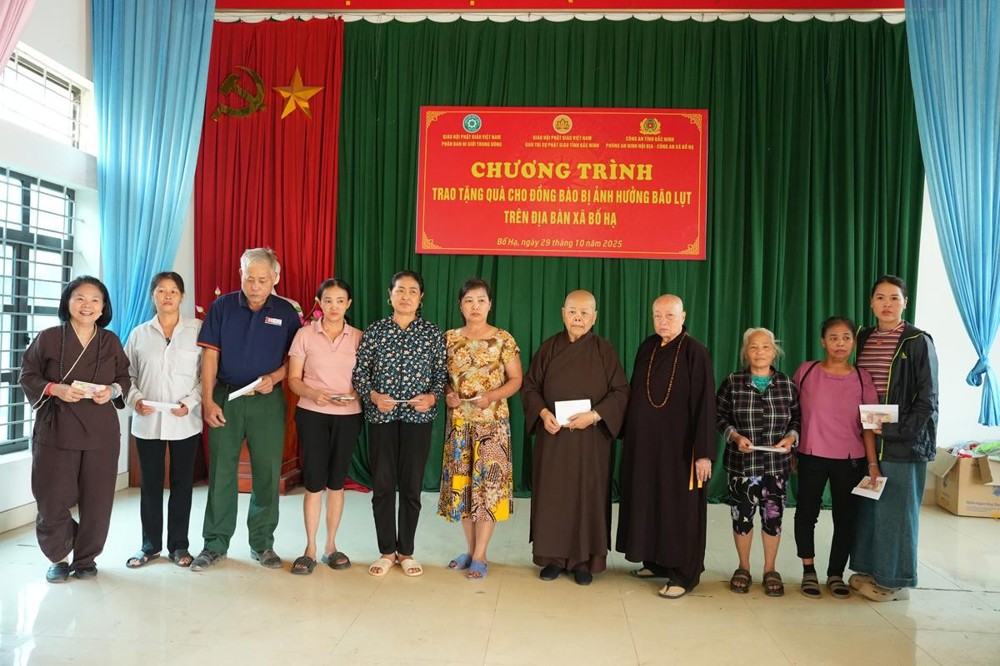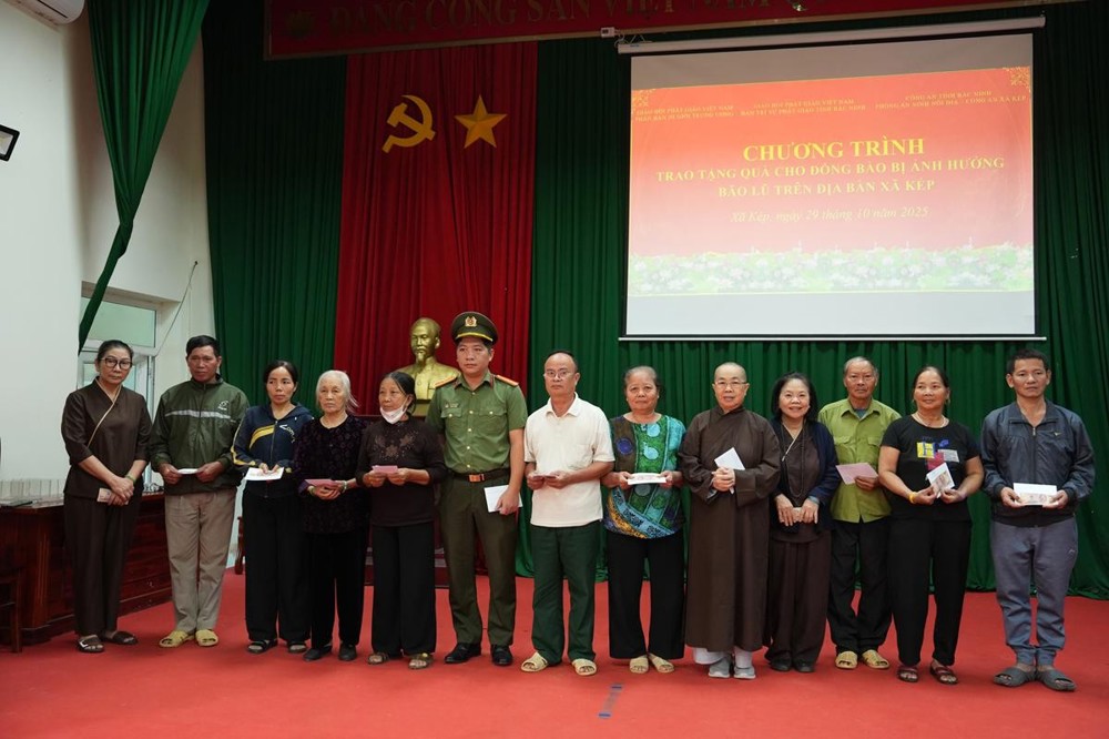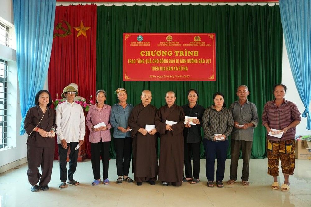 PSO - Ngày 29/10/2025, tiếp tục hành trình mang yêu thương đến với đồng bào các tỉnh miền Bắc bị ảnh hưởng bởi cơn bão số 10 và 11, Phân ban Ni giới Trung ương GHPGVN đã phối hợp cùng Ban Trị sự GHPGVN tỉnh Bắc Ninh và Phòng An ninh Nội địa – Công an tỉnh Bắc Ninh tổ chức chương trình trao quà hỗ trợ bà con chịu thiệt hại do thiên tai.