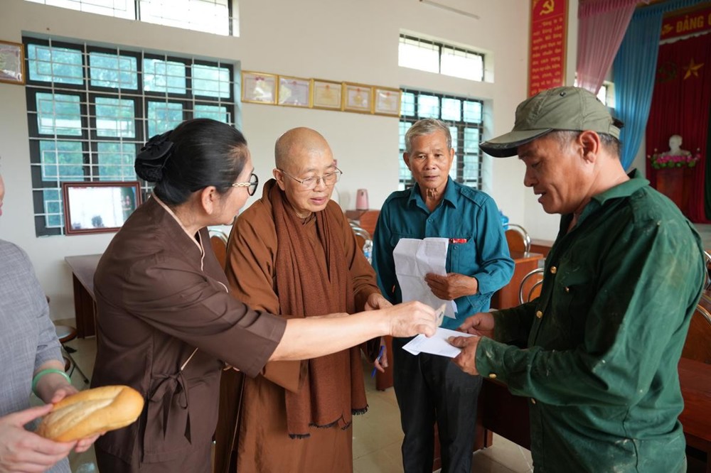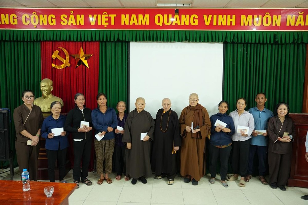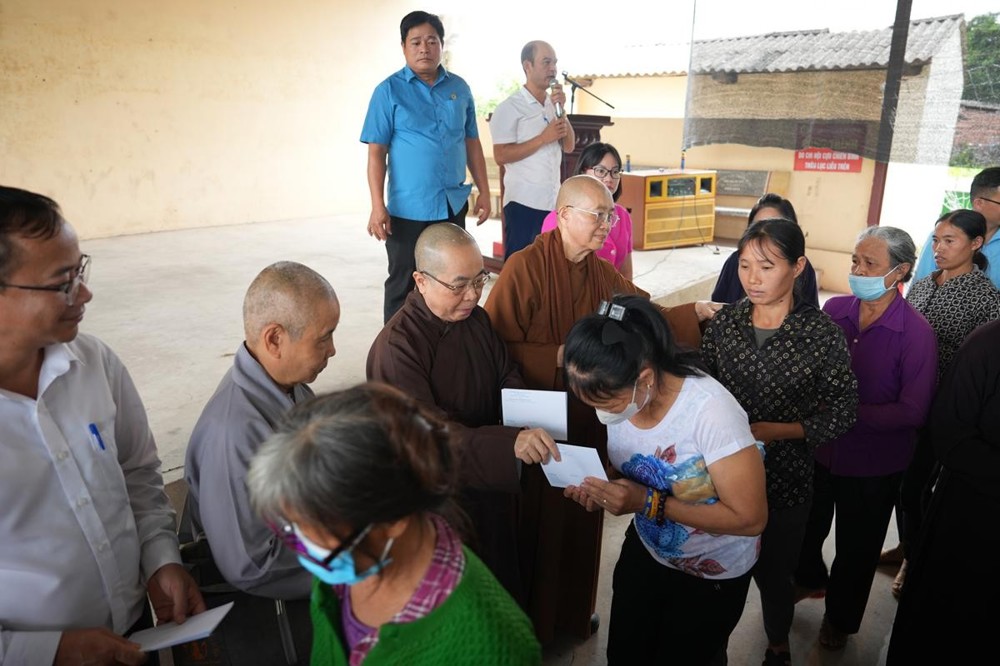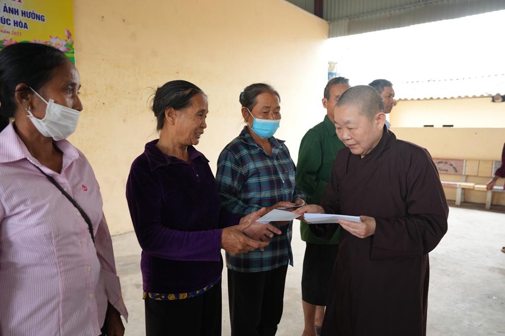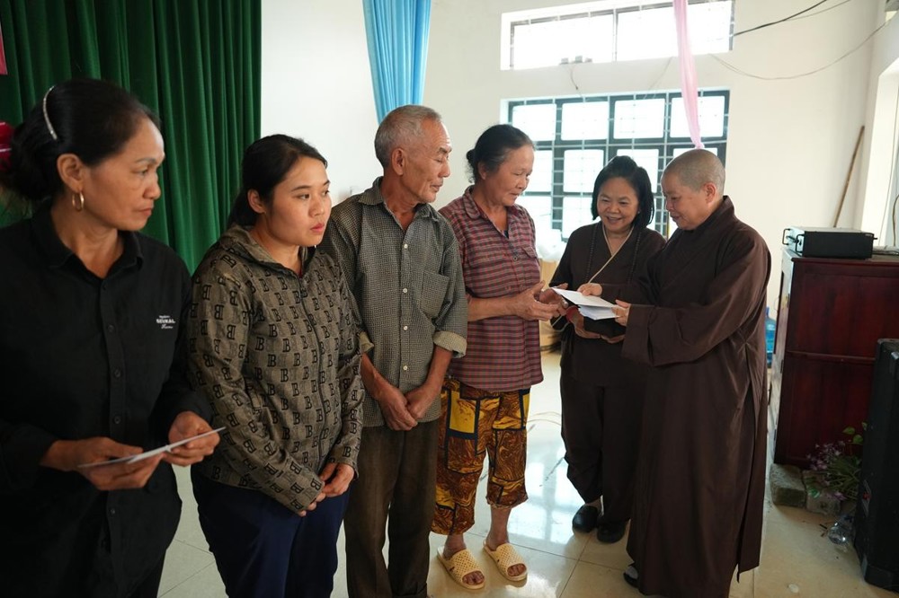 Quý chư Ni động viên bà con: “Những gì thiên tai lấy đi, lòng người sẽ cùng nhau gây dựng lại. Xin bà con hãy vững tin – bởi bên cạnh bà con luôn có Đảng, Nhà nước, chính quyền các cấp, có nghĩa tình đồng bào cả nước và có cả tình thương bao la của Tăng Ni, Phật tử GHPGVN”.